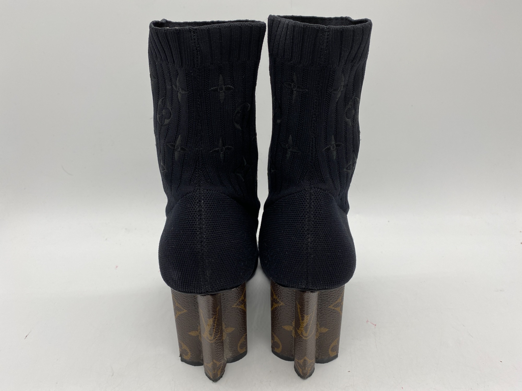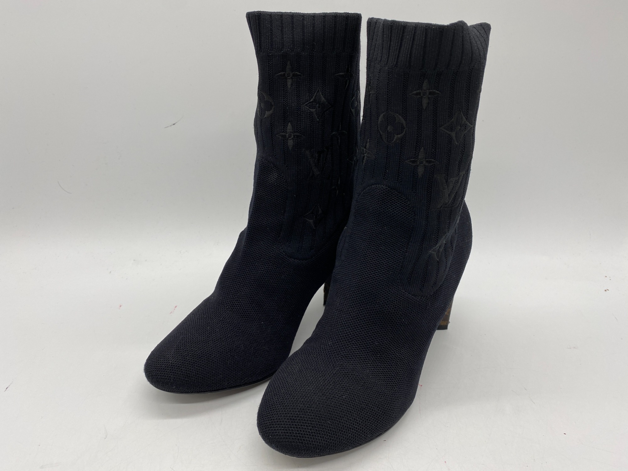 モノグラム・フラワーの形のヒールが特徴的なニットブーツ!