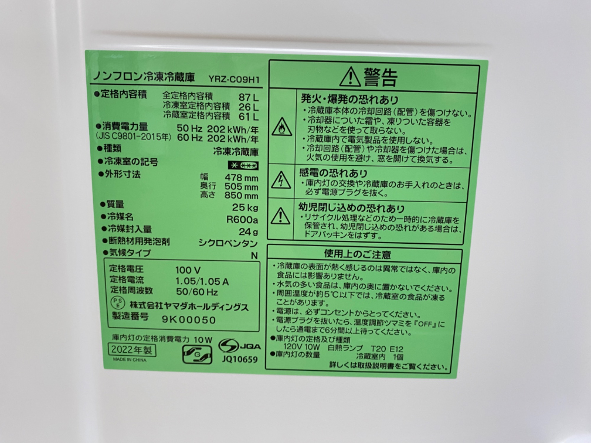 型番 :YRZ-CO9H1