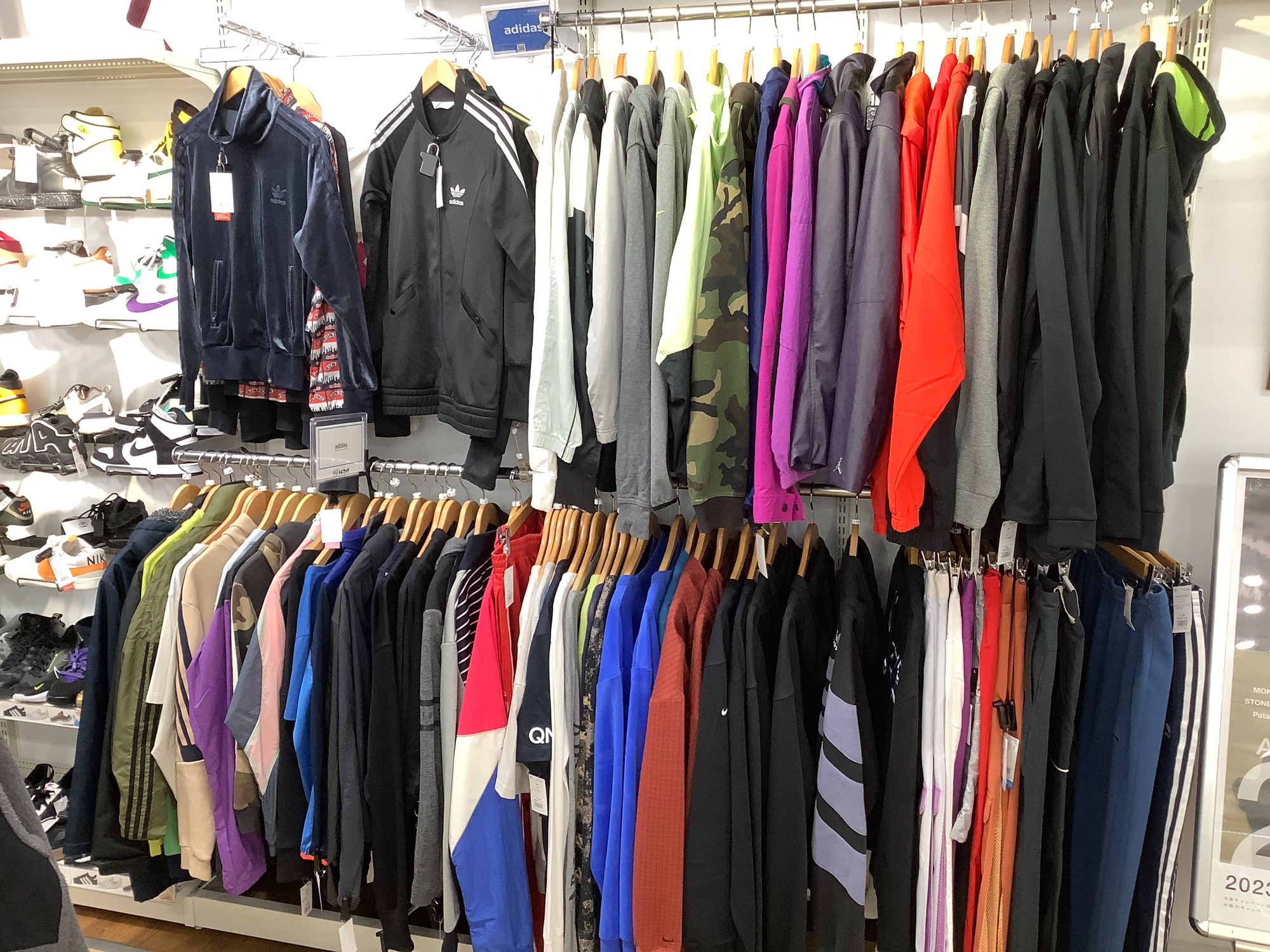 こちらはNIKE、アディダスの衣類コーナーです!