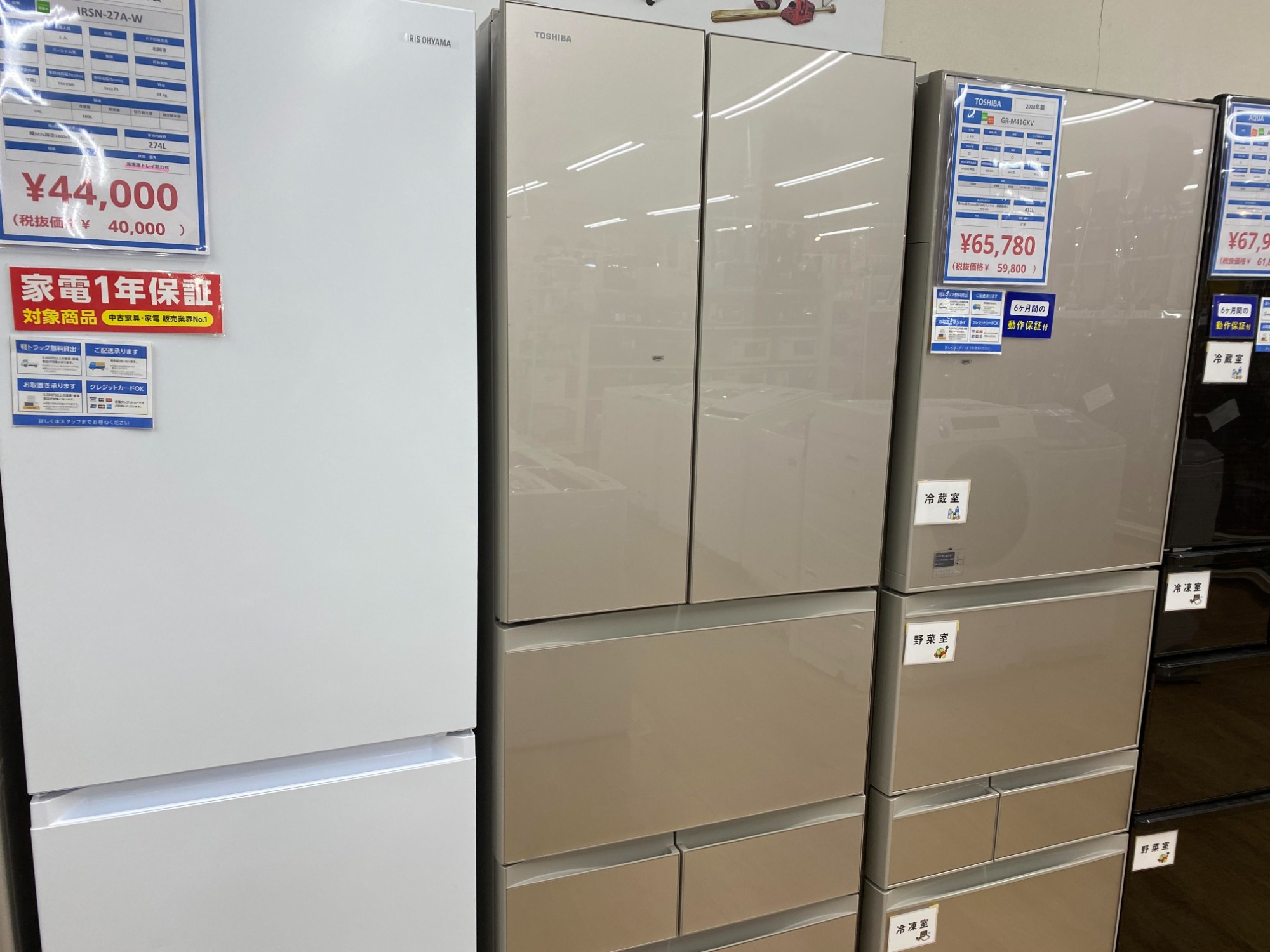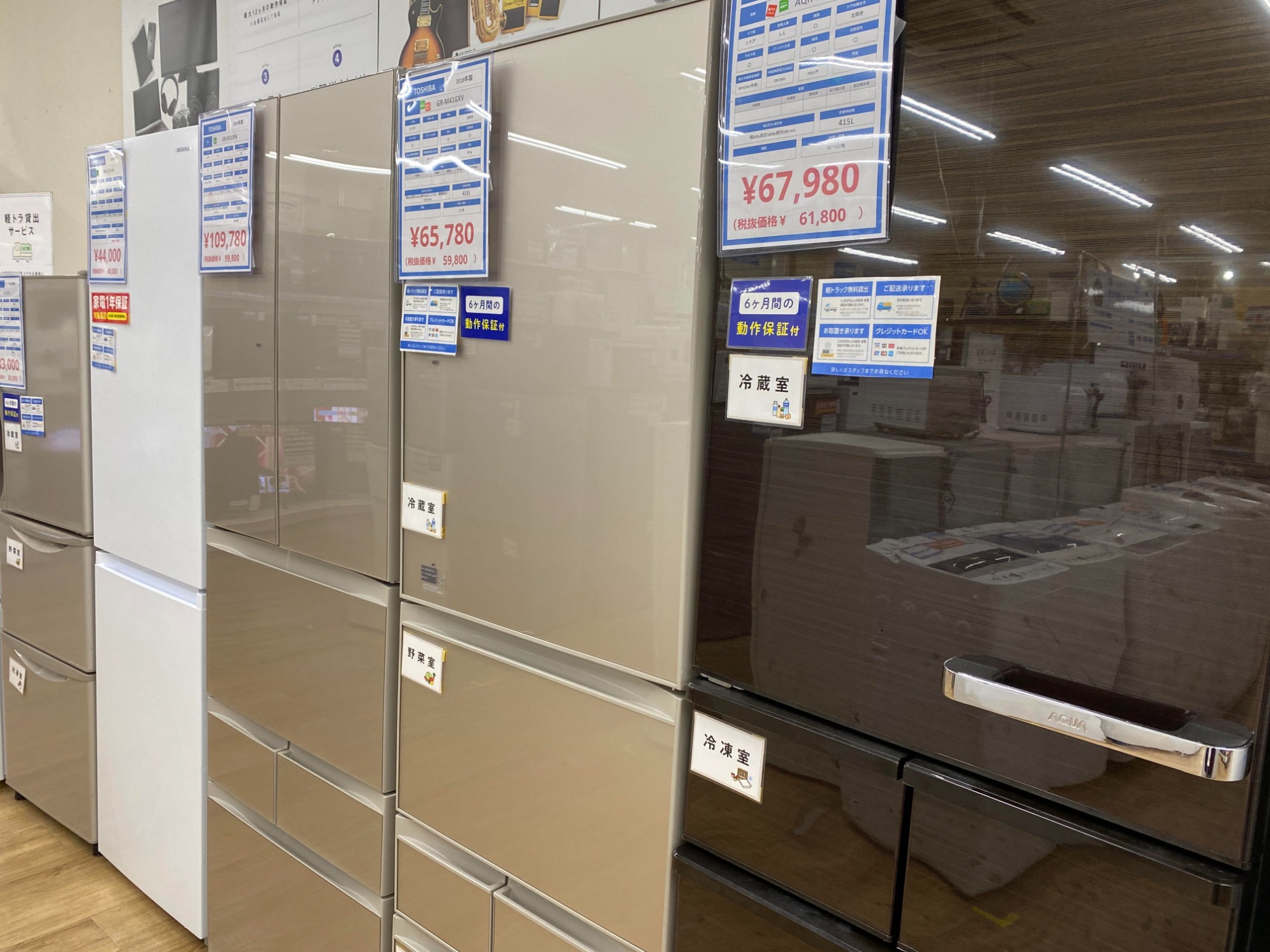 当店ではファミリー用の冷蔵庫や洗濯機など