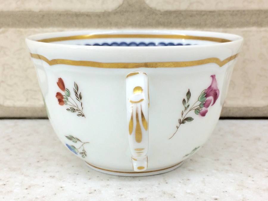 フチと取っ手に施された金色のラインと青の波打った青のラインが気品を漂わせる