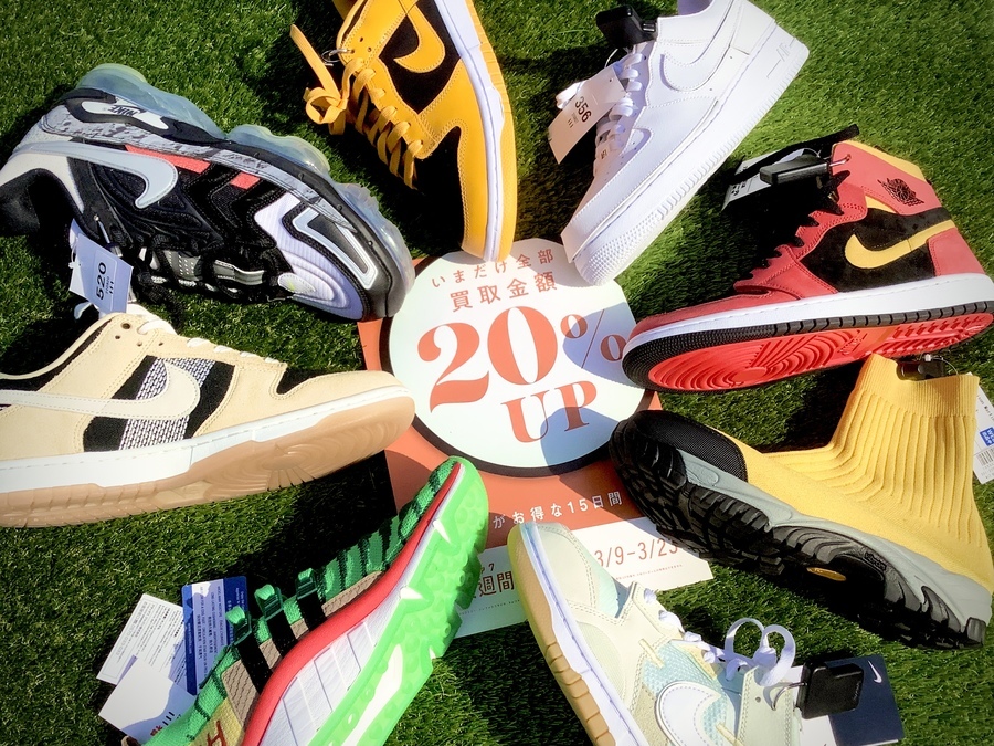 買取りが成立しますと、お持ち込み頂きましたお品物の買取金額が20%UPいたします!