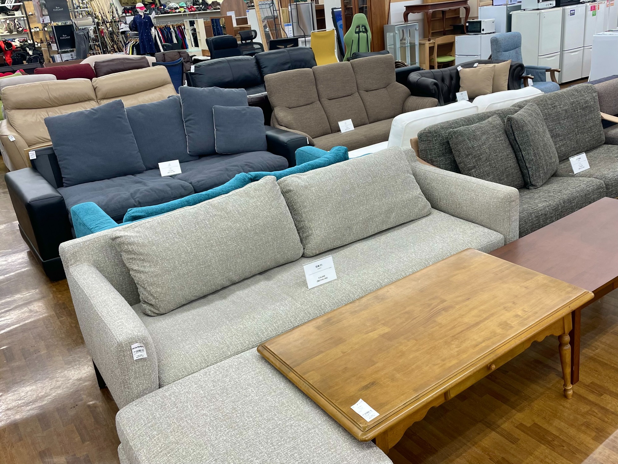 当店では地域最大級の売り場面積を誇る家具製品を始め、家電製品、AV機器、衣類、ハイブランドアイテム、