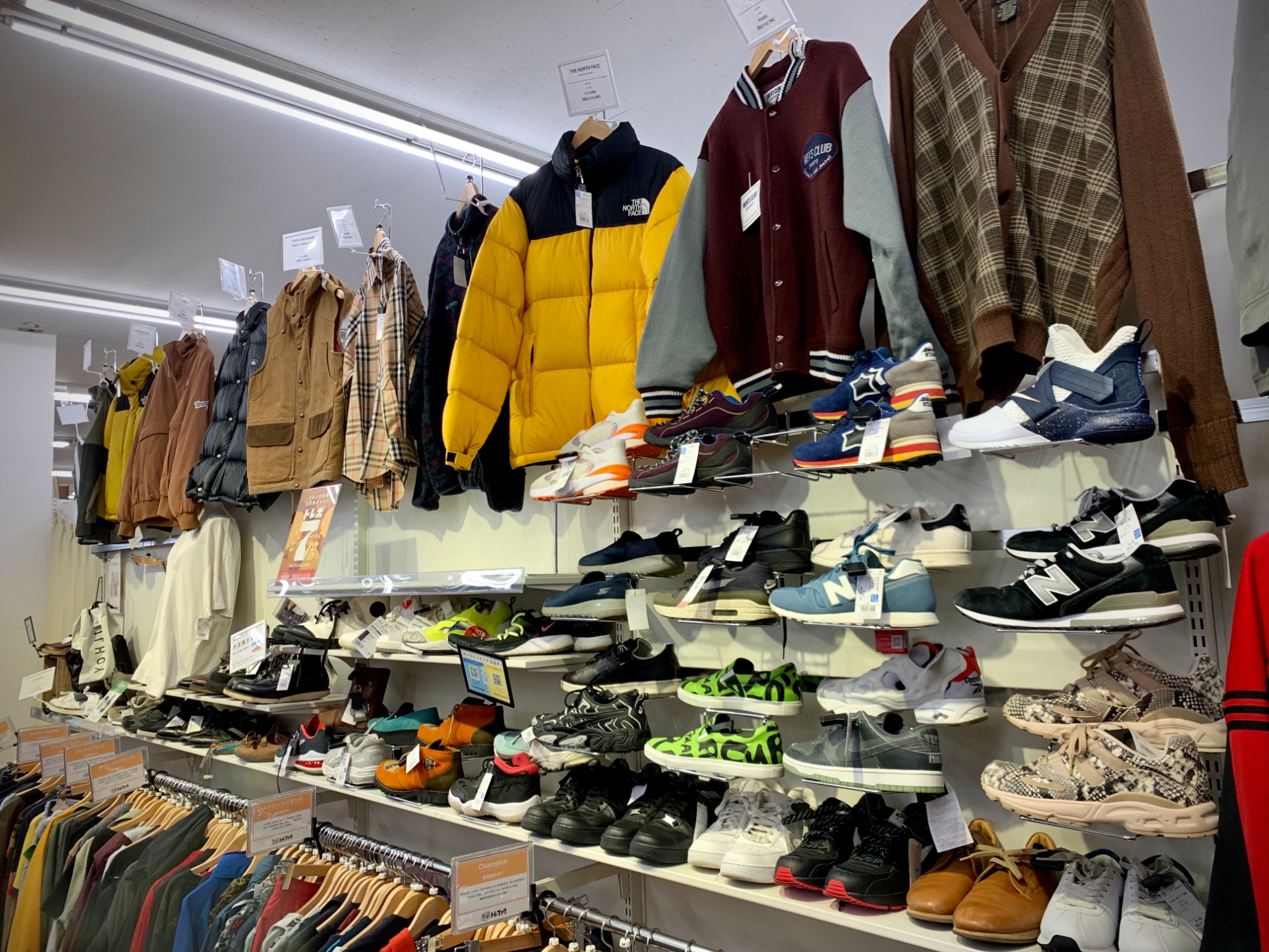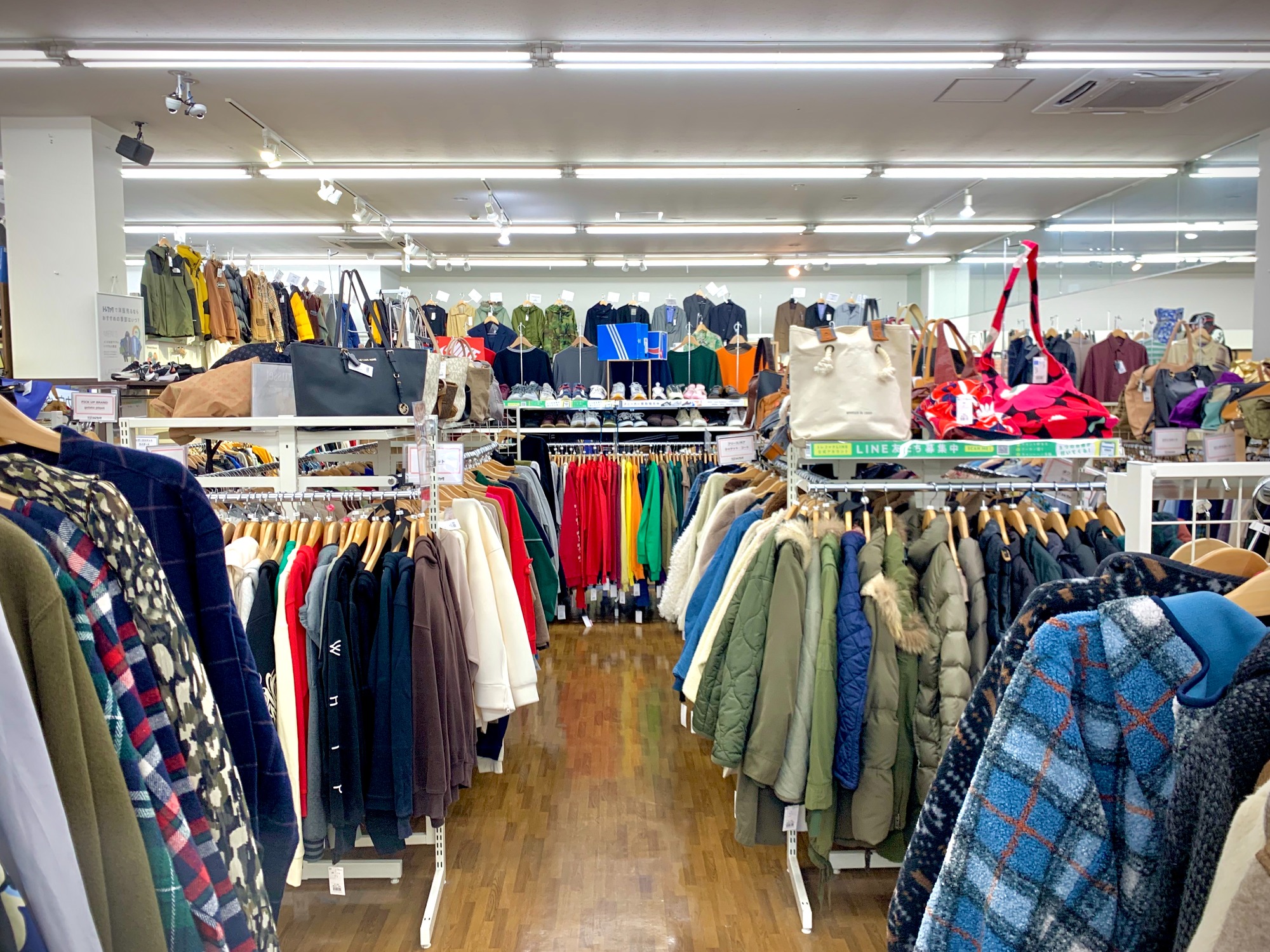 衣類コーナーはお店の大多数を占めながらも、