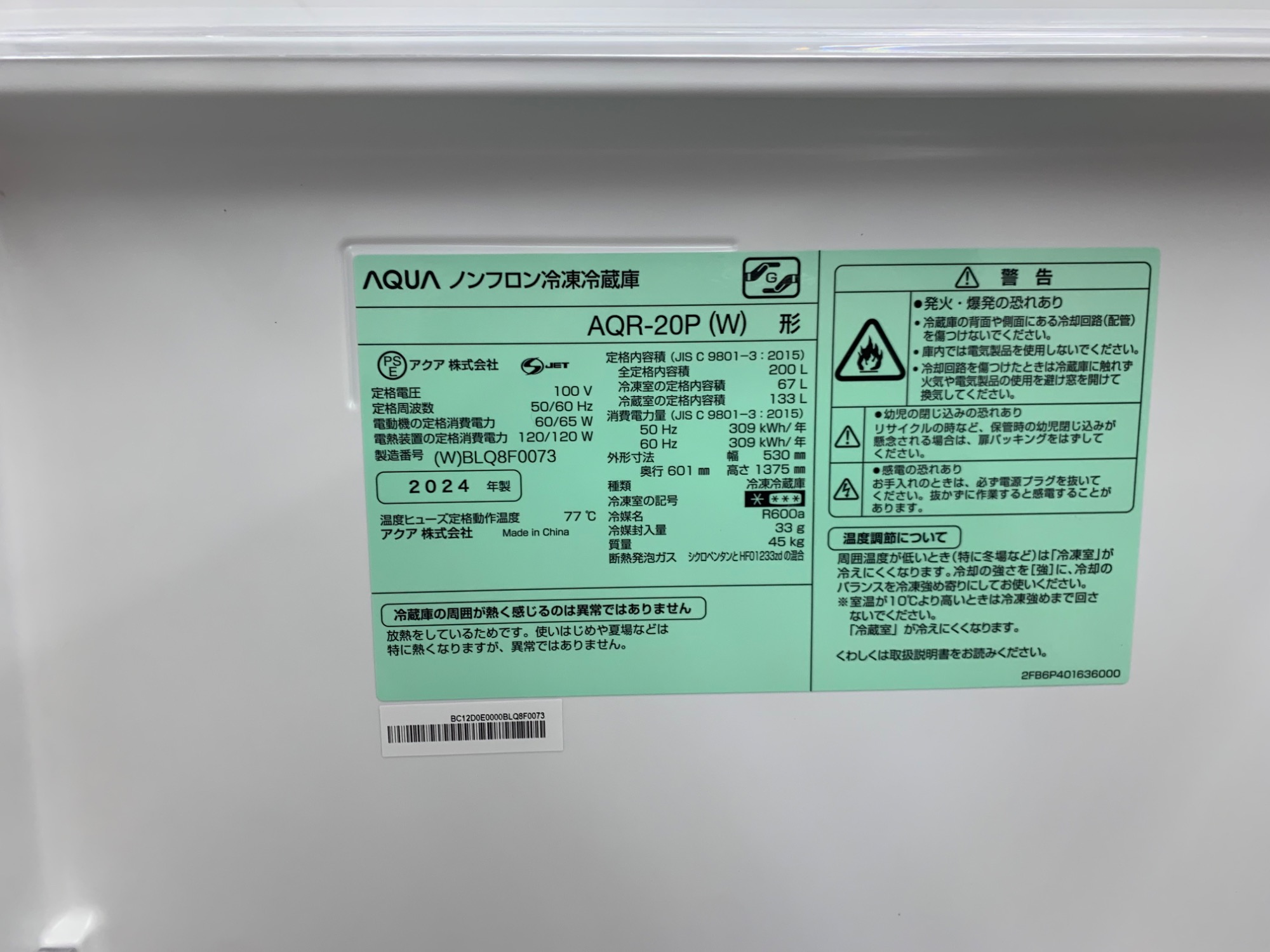 【中古家電大量展示中!】2024年製2ドア冷蔵庫 AQUA (AQR-20P) 200Lのご紹介です!【家電製品はトレファクにおまかせあれ♪】