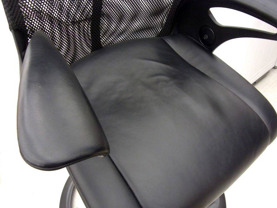 座面とアームレスト部分にはレザーを使用しております♪