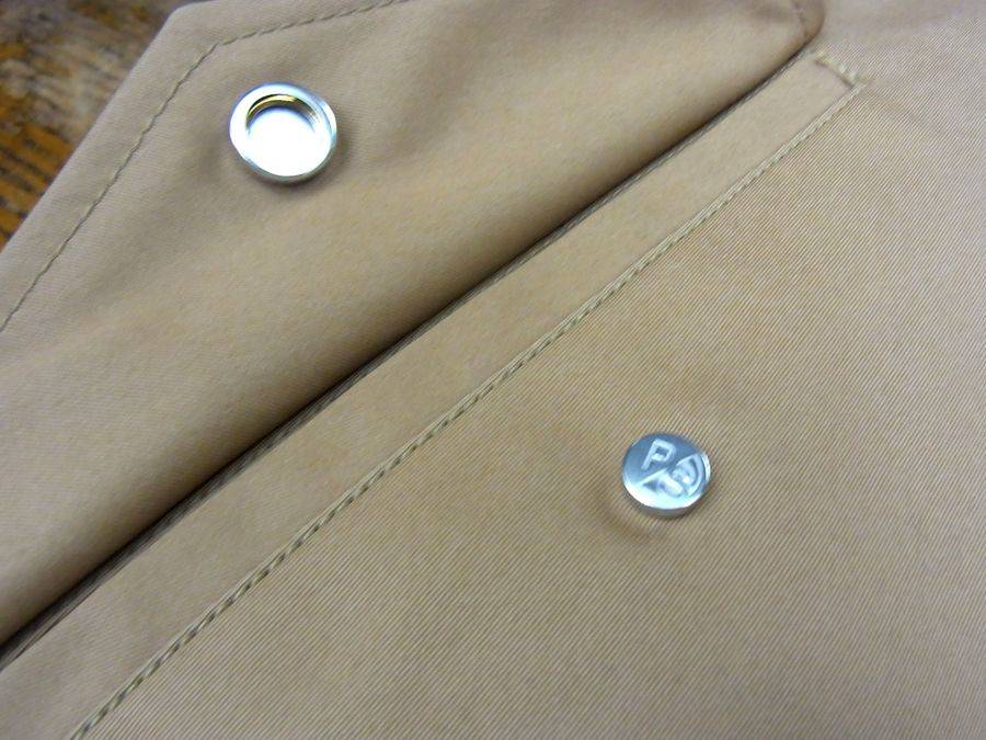 袖口と背中の部分にスナップボタンが付いておりシルエットの調節が可能となっております。