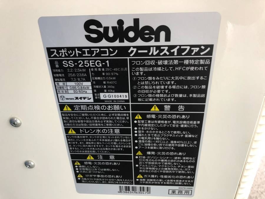 スイデンのスポットクーラー買取入荷【横浜鶴見店】