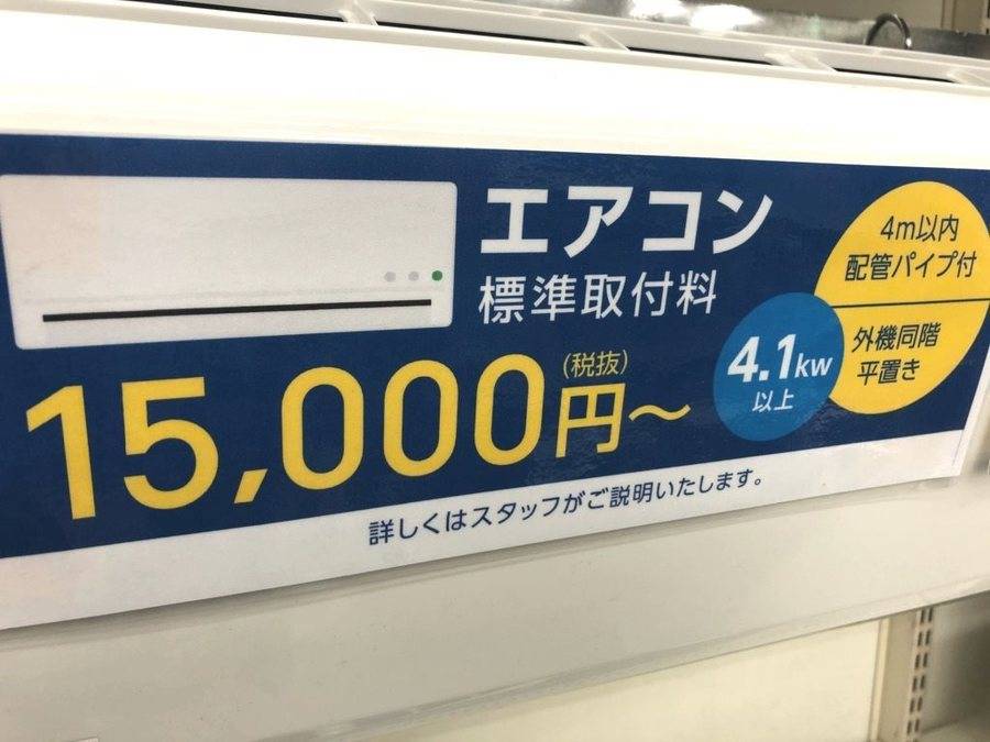 当店ではエアコン取付費用も必要となります。