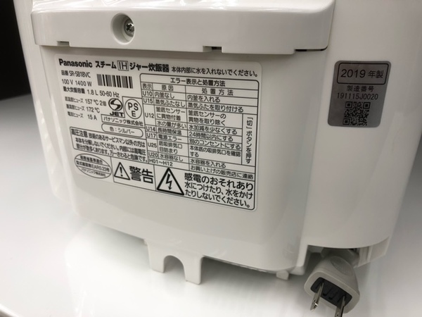 【Panasonic】スチームIH炊飯ジャー SR-SB18VC 2019年製買取入荷!【横浜鶴見店】