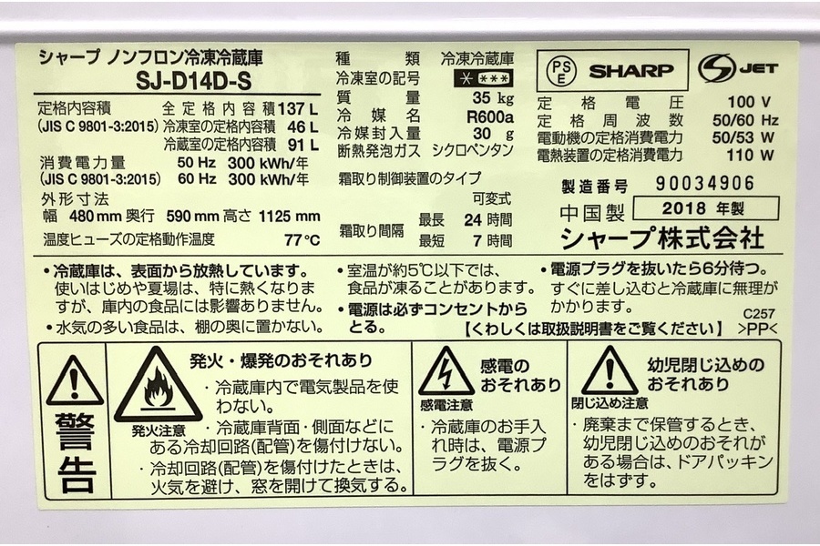 【4月は楽器20%UP!!】 SHARP 2ドア冷蔵庫2018年製!!