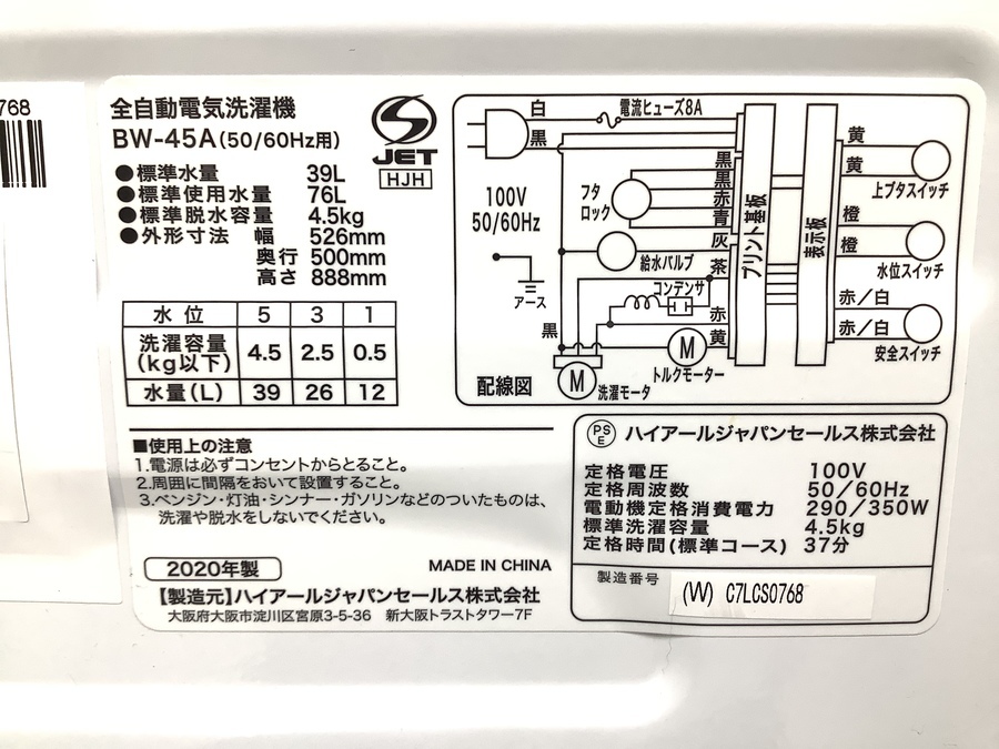 【4月は楽器20%UP!!】お買い得品!!Haier 全自動洗濯機 4.5kg 2020年 ご紹介!!
