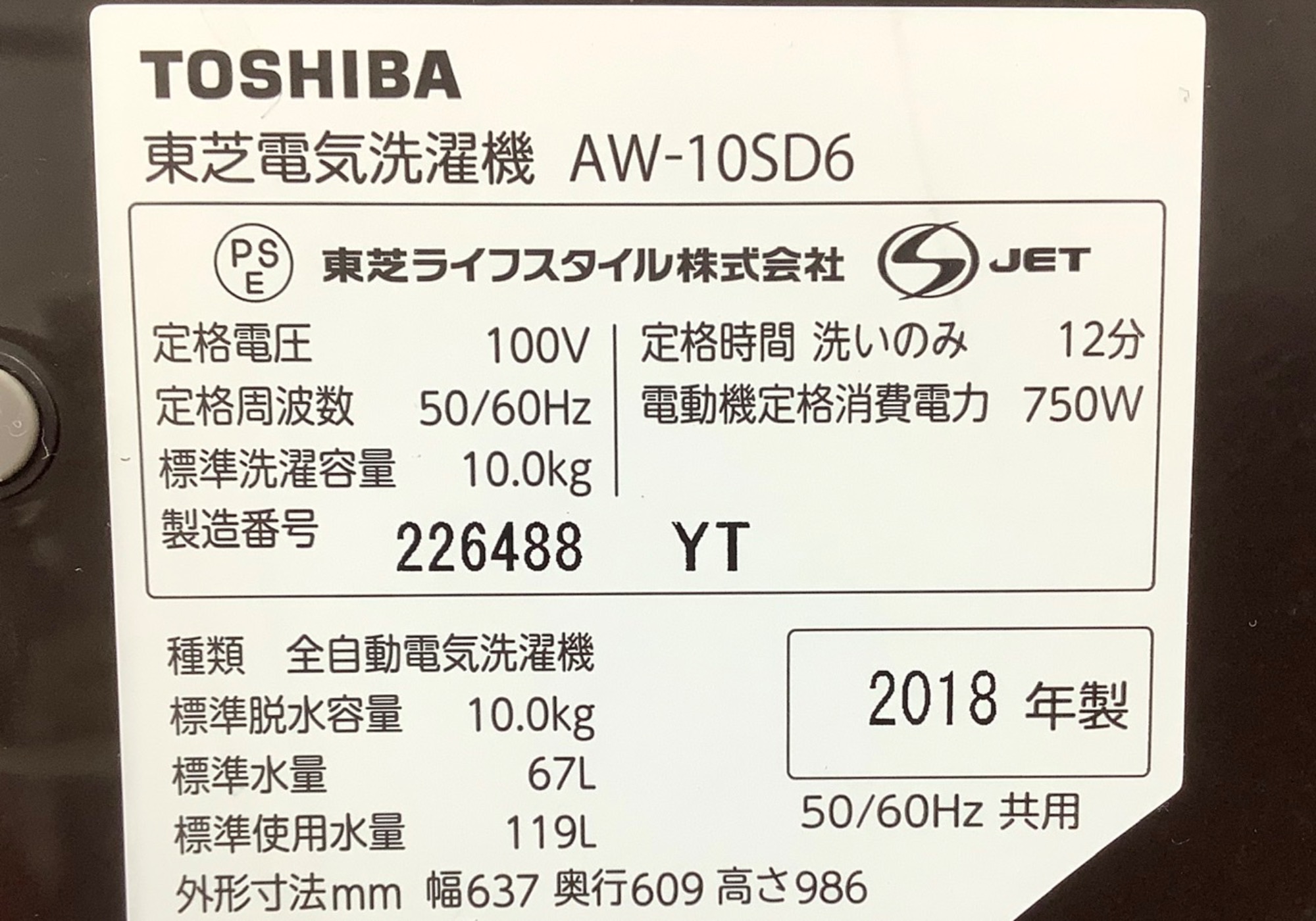 製造年数:2018年製