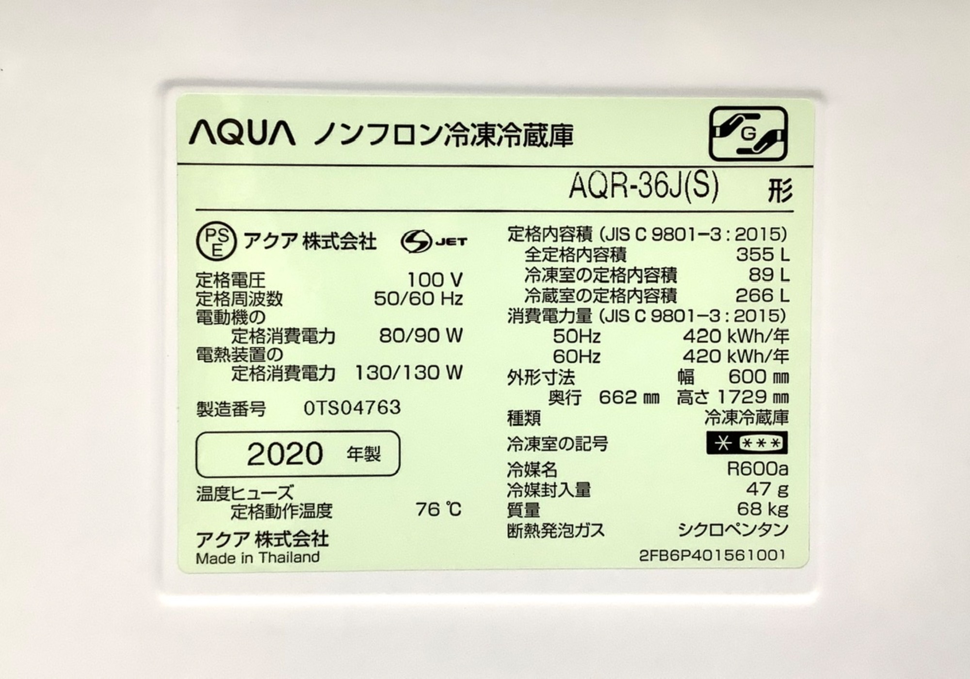 製造年数:2020年製