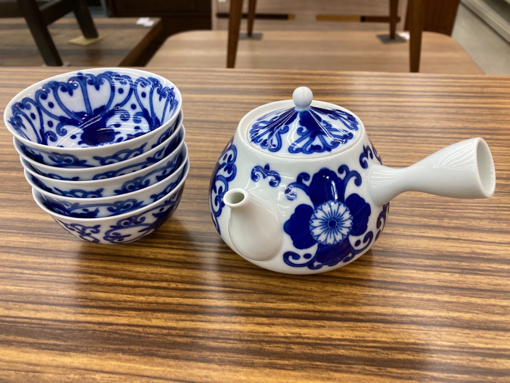 深川製磁の茶器揃え【染付菊唐草】のご紹介!!