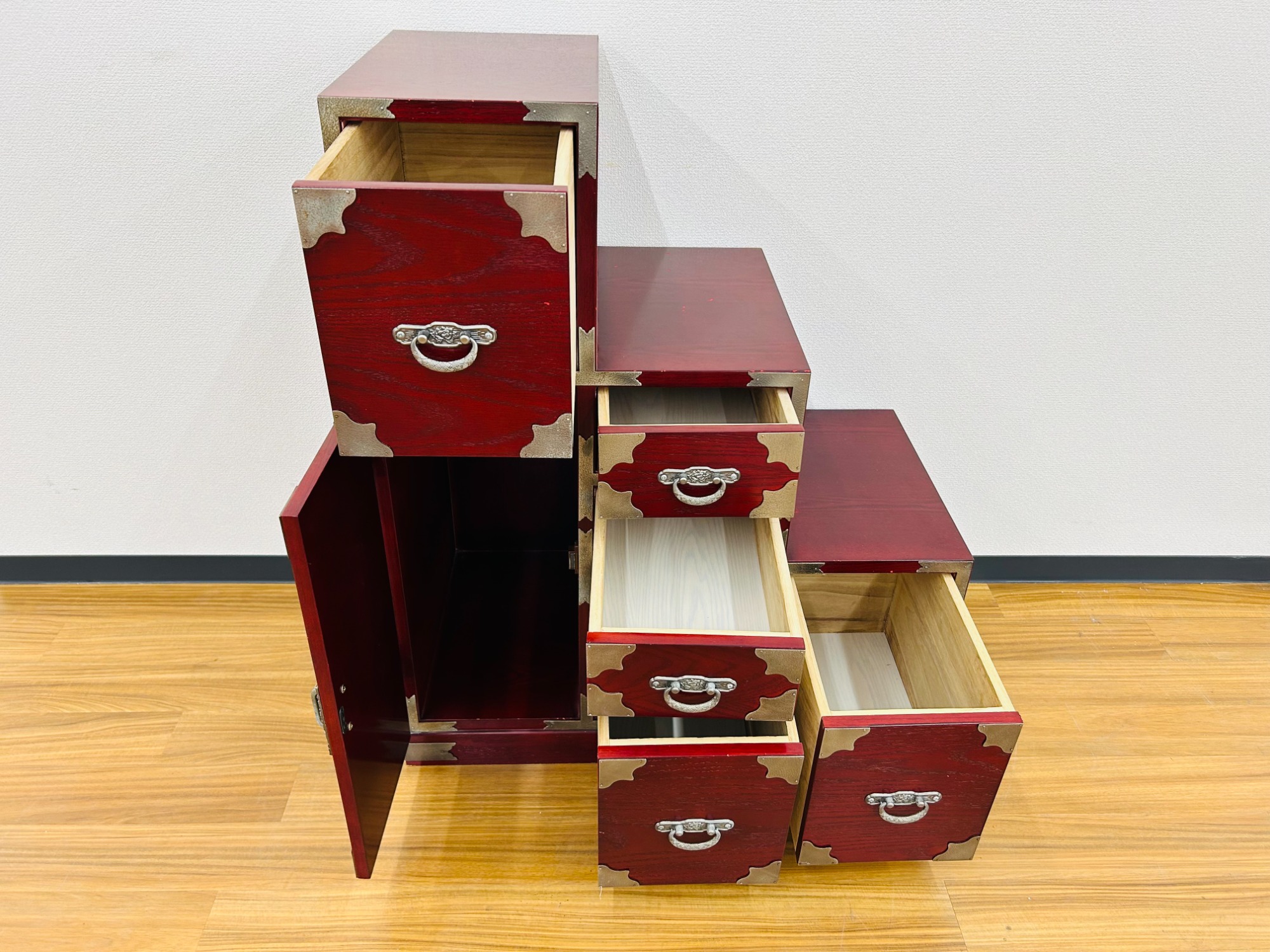 形態:3段、引き出し×5、開き戸×1