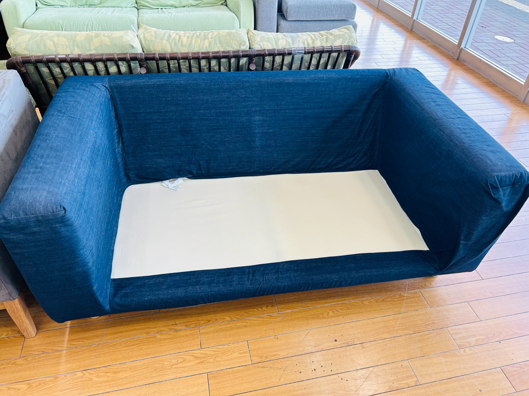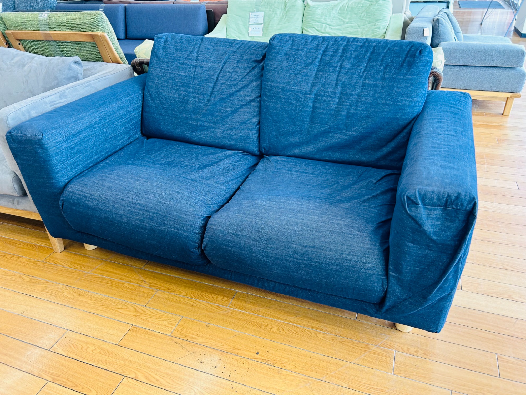 アイテム名:綿デニムカバー付き2人掛けソファー
