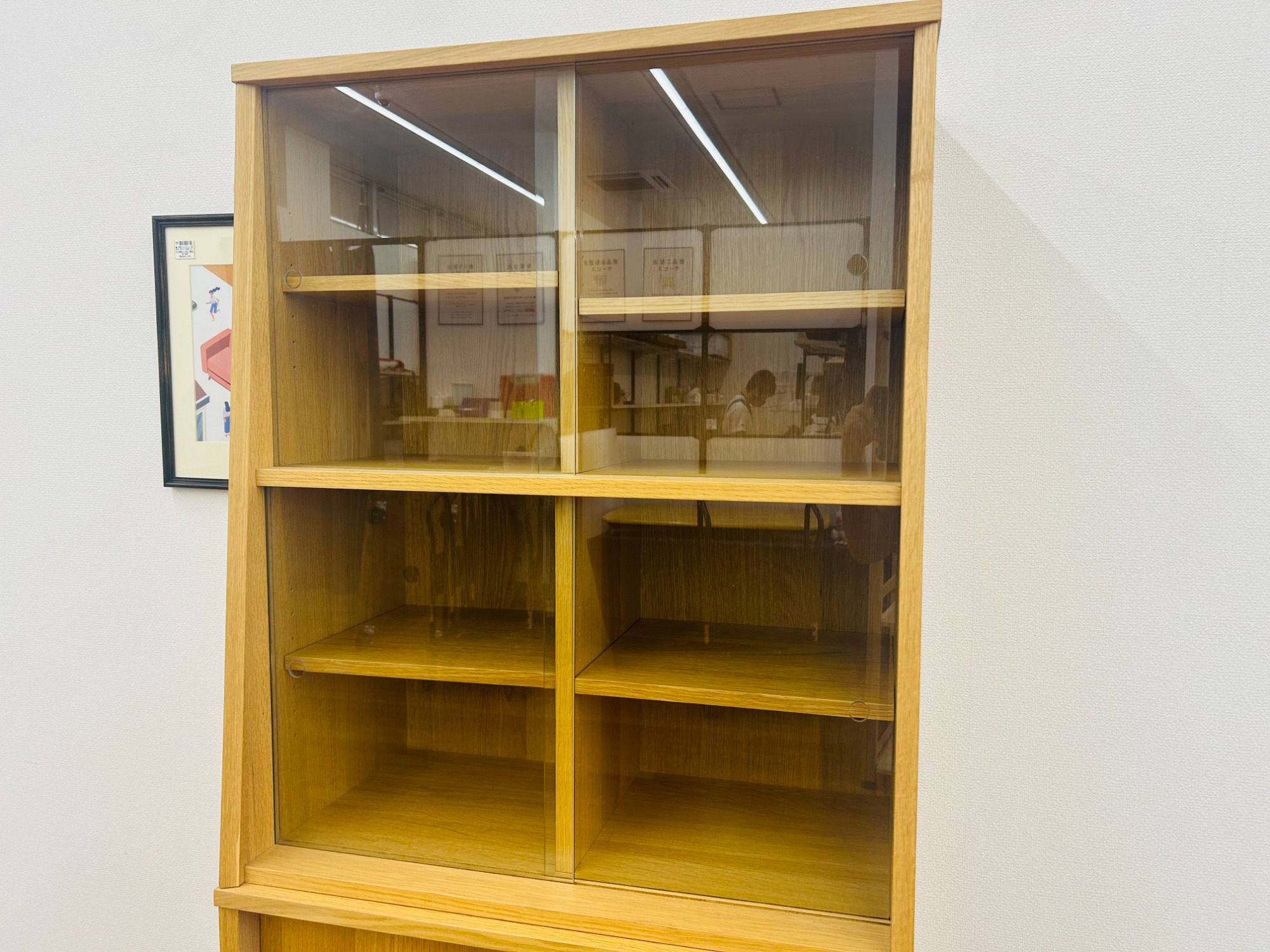 面積の半分を占めるガラス戸収納が特徴の一品。