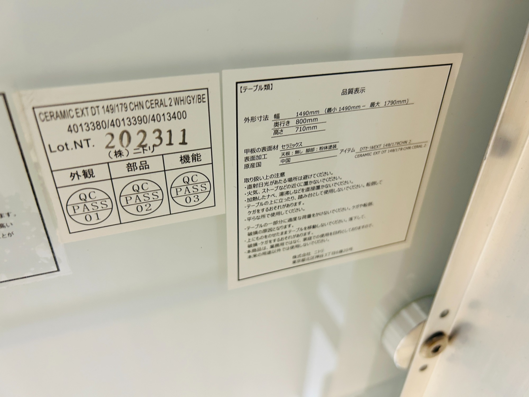 ニトリから伸縮可能なセラミックダイニング5点セット入荷いたしました。