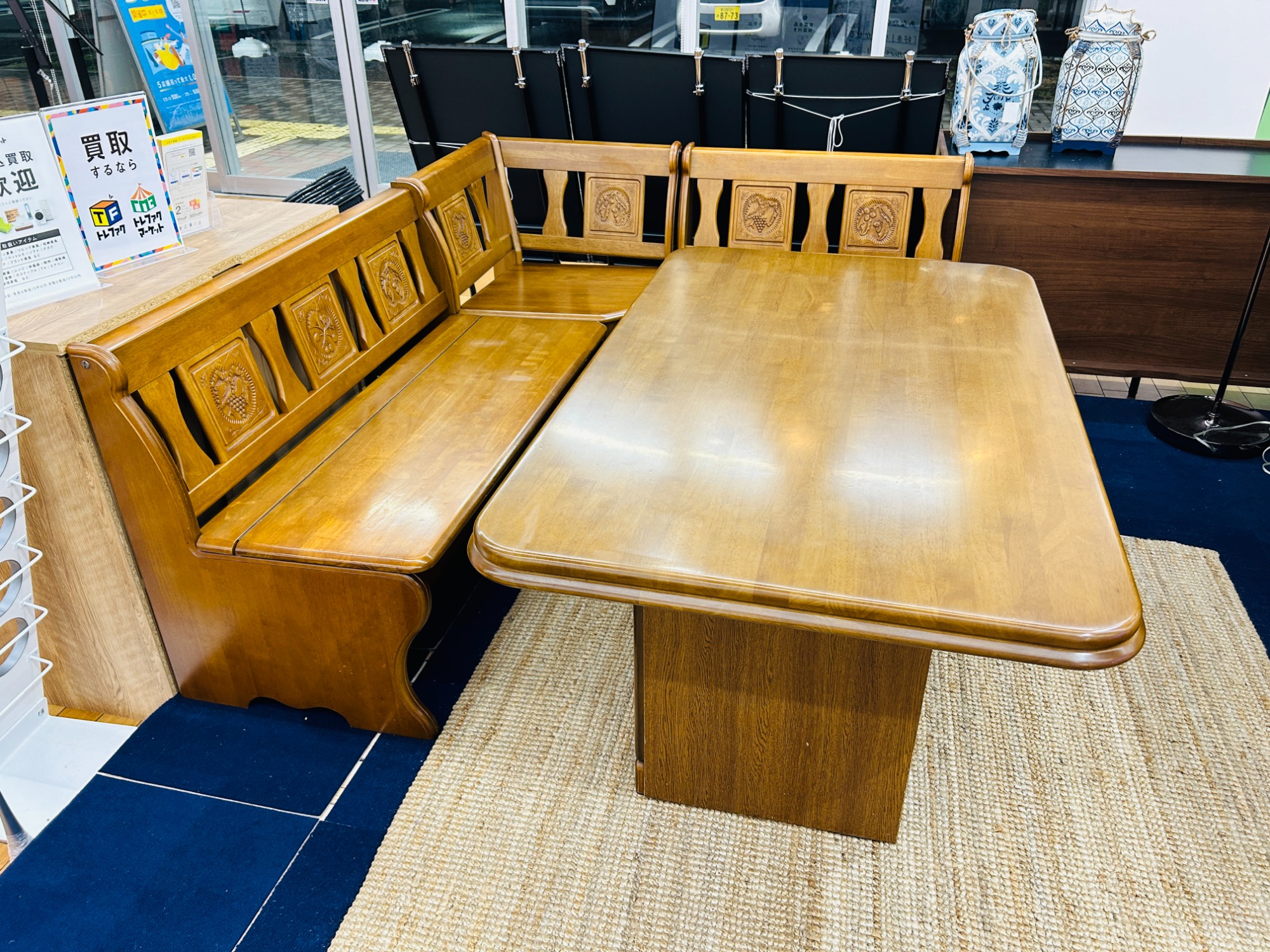 【可愛らしい装飾が特徴的】収納付きコーナーダイニング4点セット入荷いたしました!