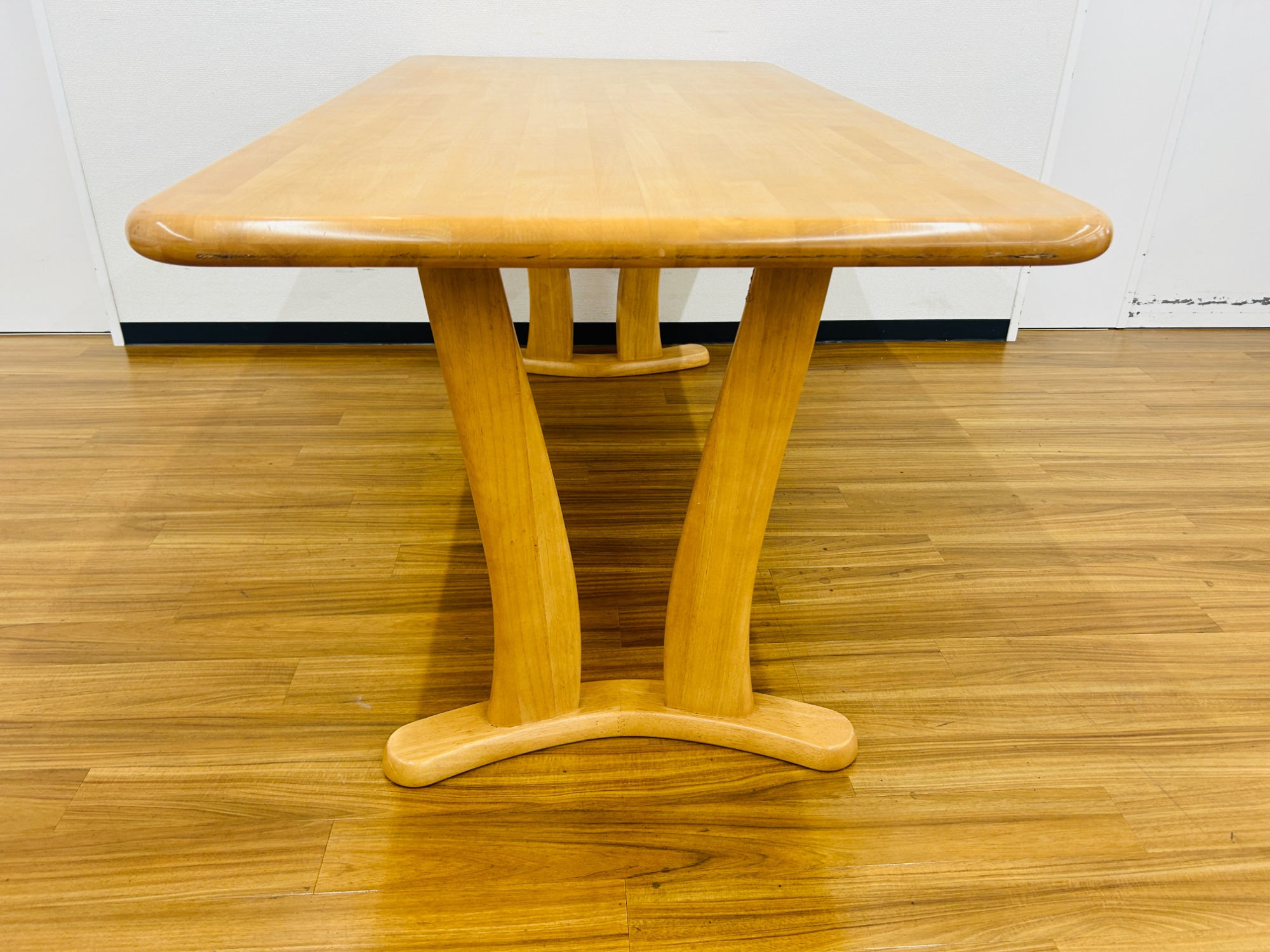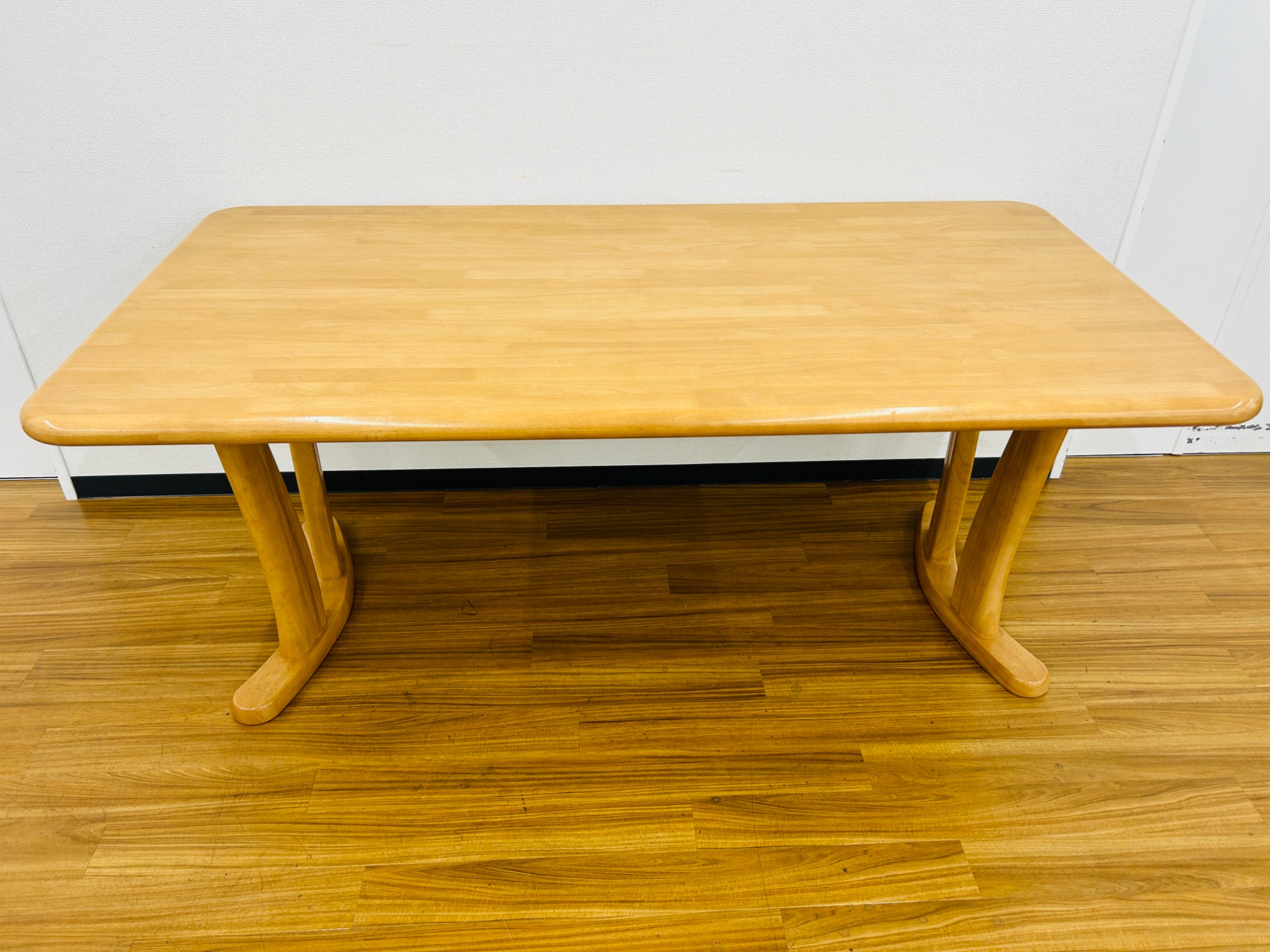 ナチュラルな色合いに角を丸くした設計で木の温かみを感じられるダイニングテーブルです。