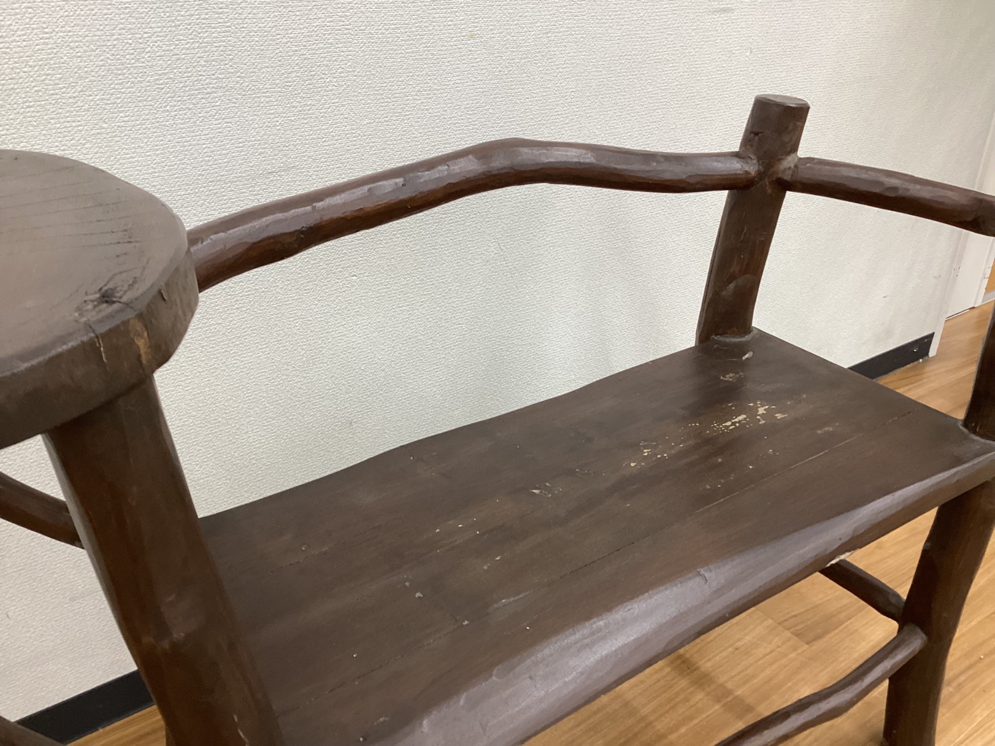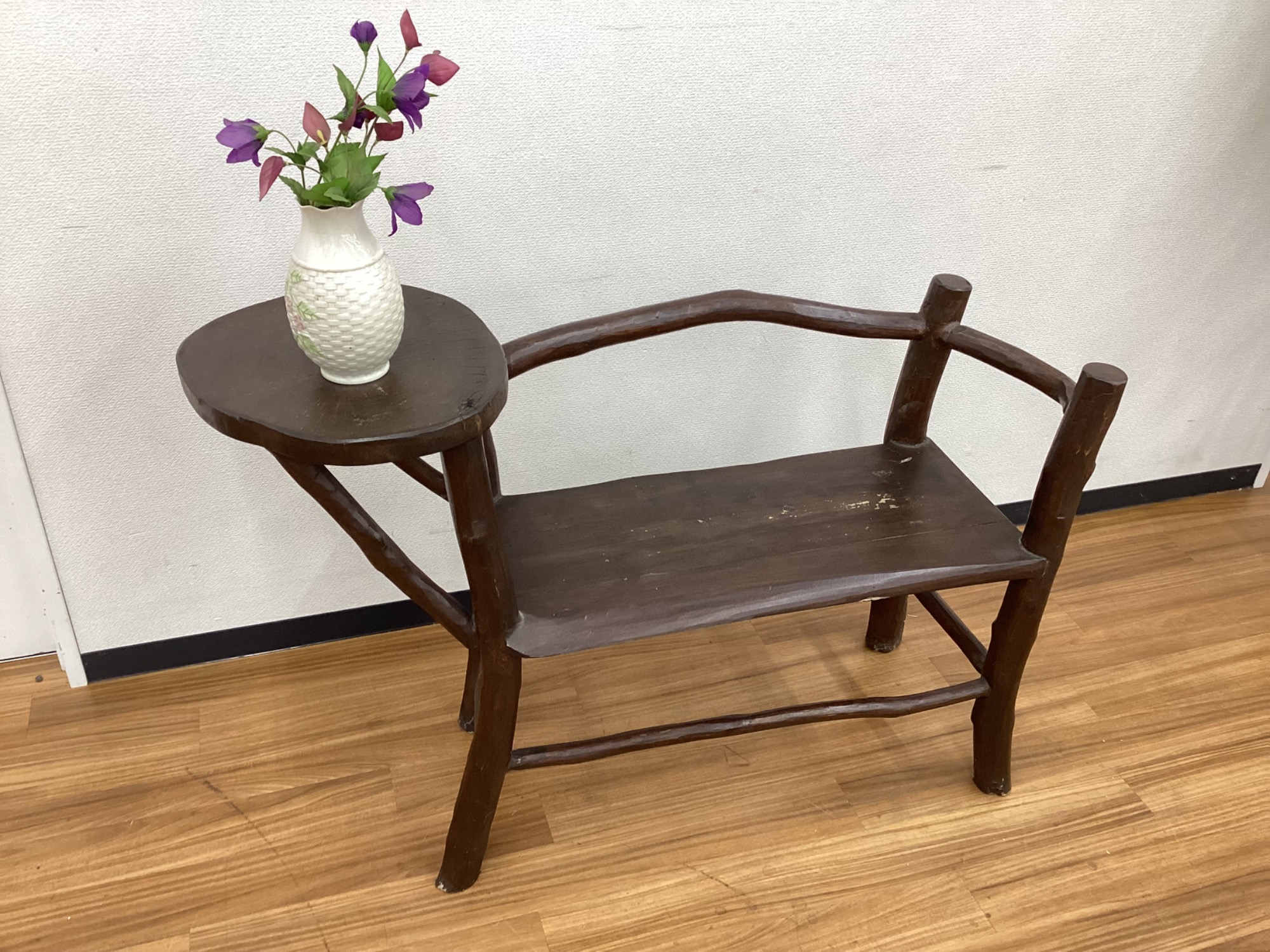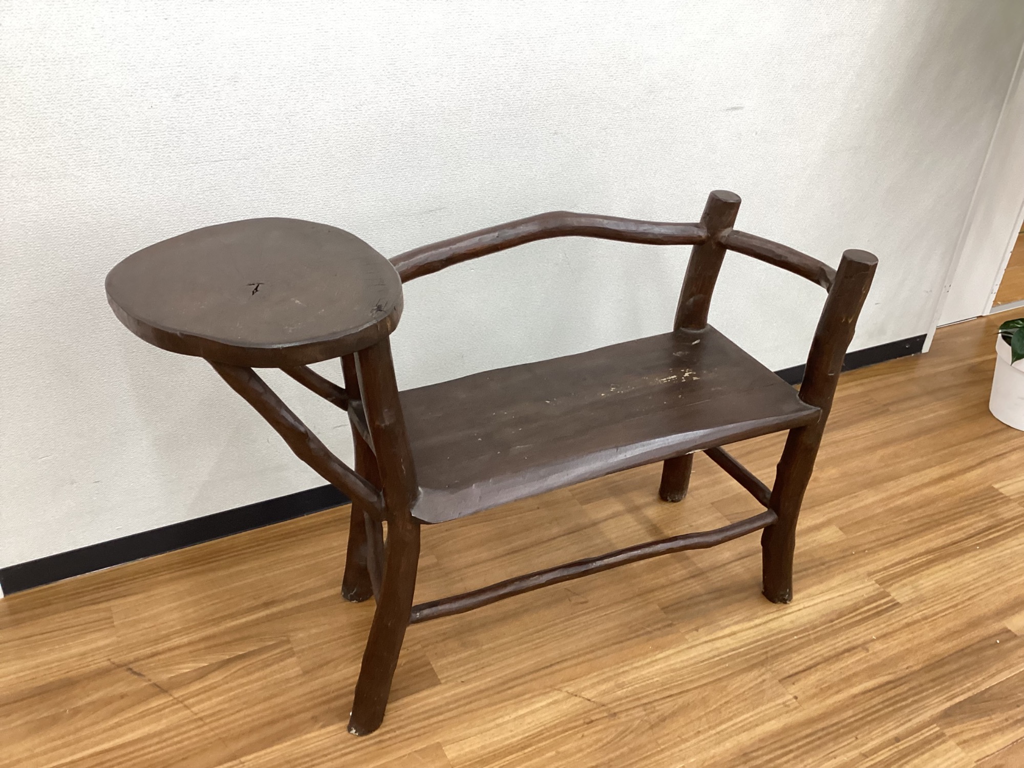 木材そのままを使用したサイドテーブル付きベンチが入荷しました!