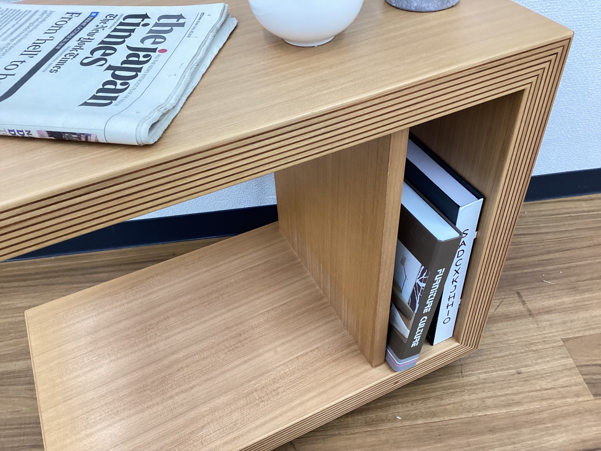 天板下には本や雑誌を立てかけて置けるスペースがあります。
