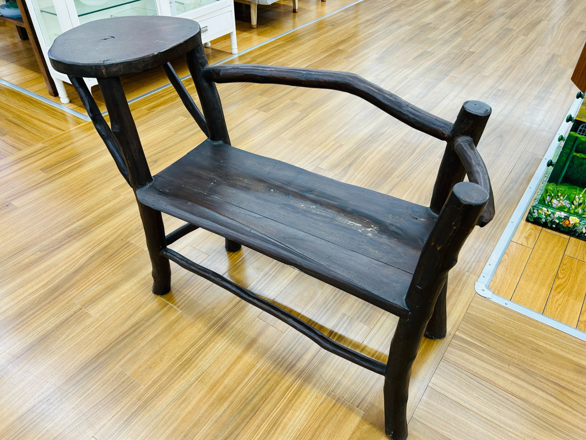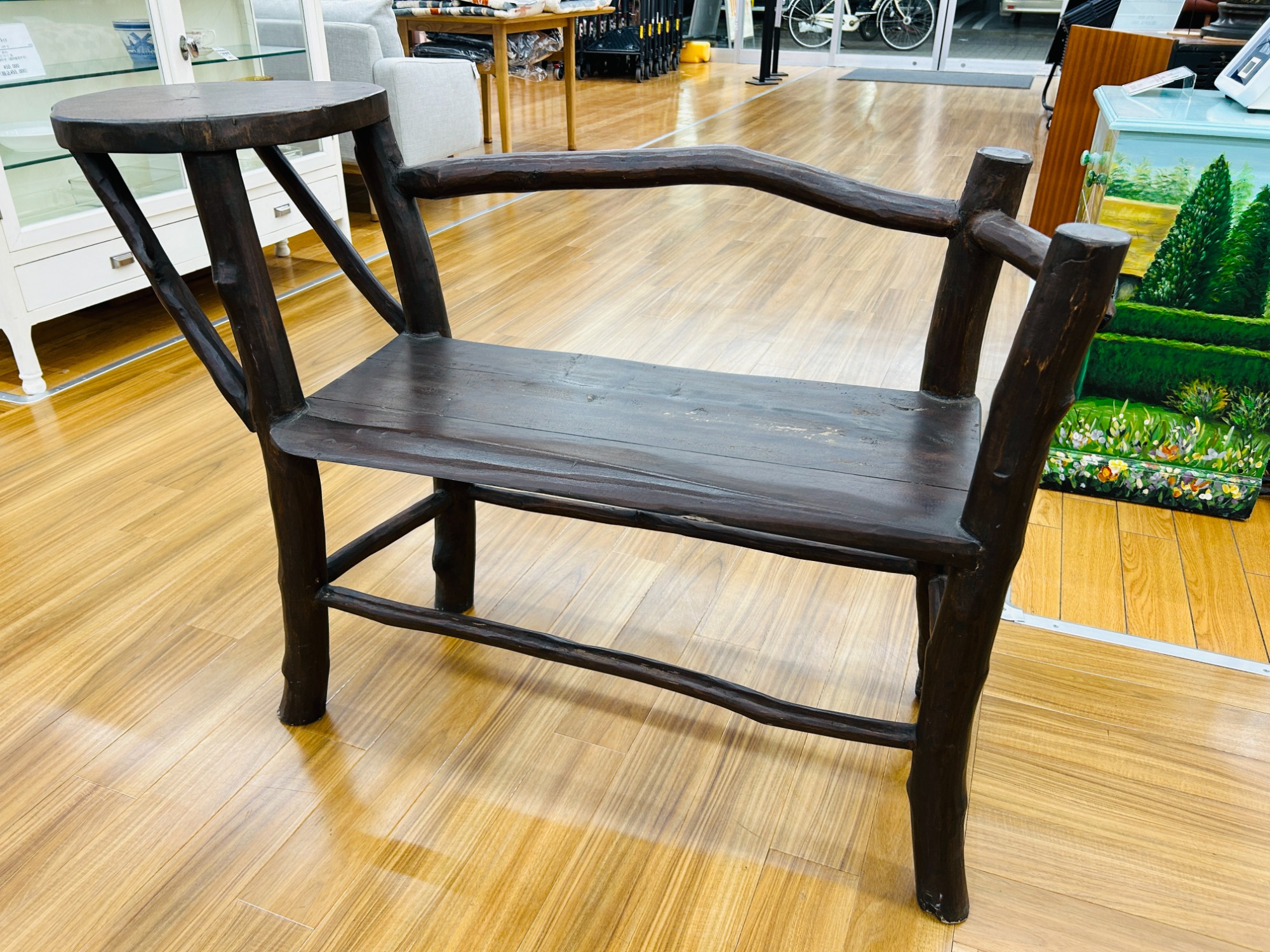 古材を使用したサイドテーブル付きベンチ入荷いたしました!