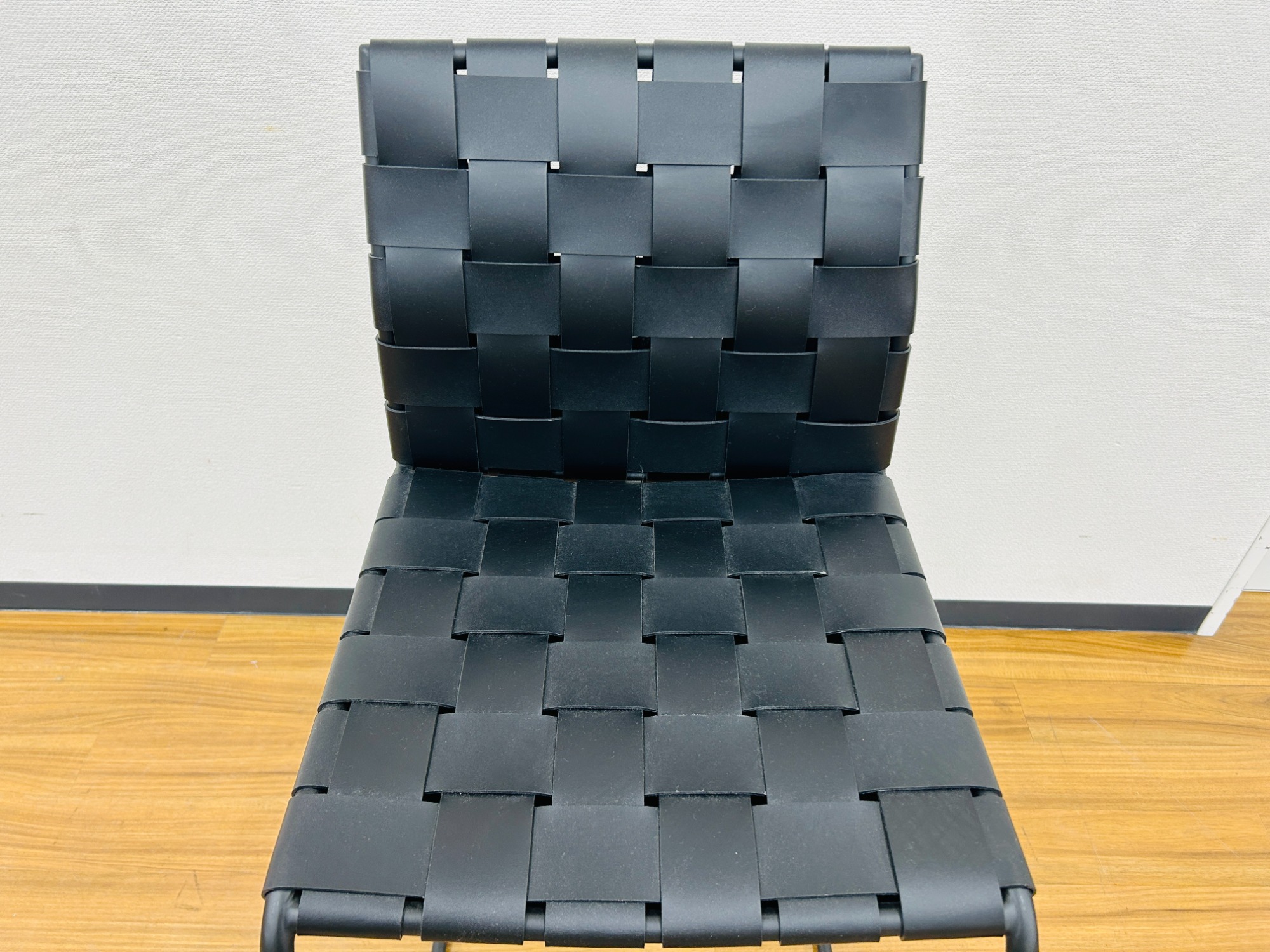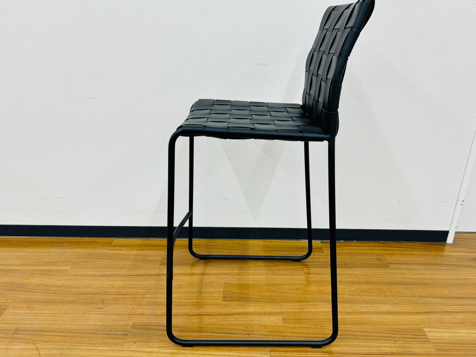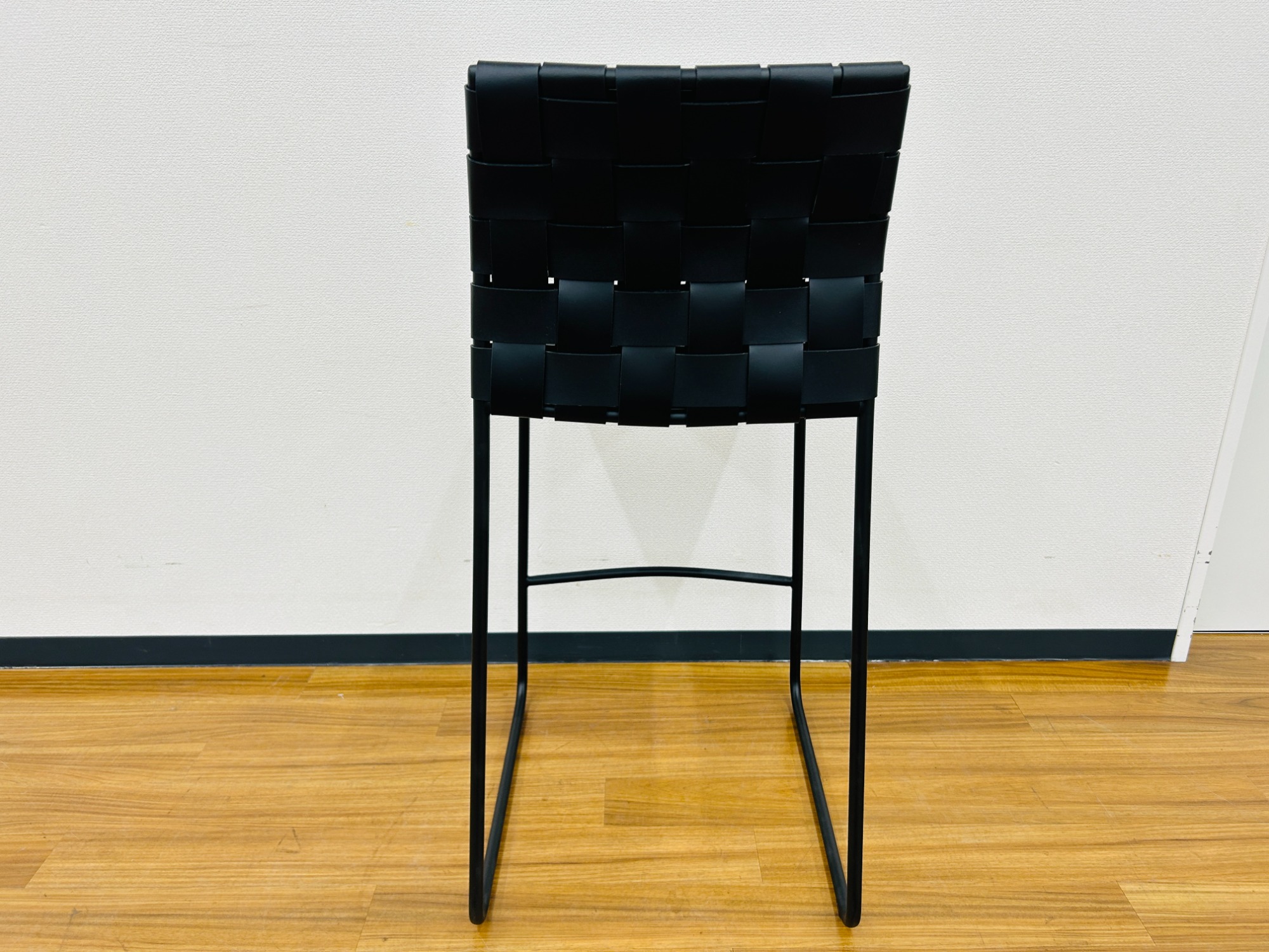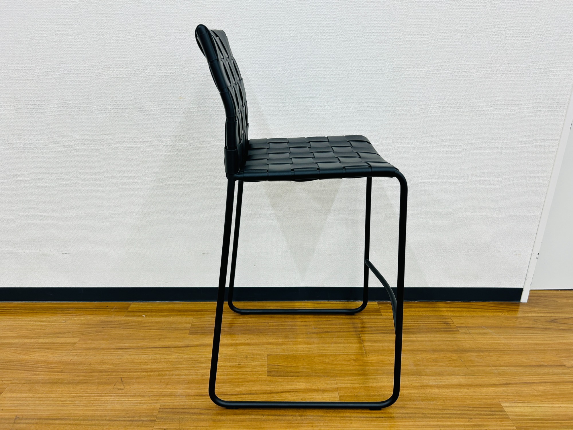 リサイクルレザーを編み込んだ特徴的なカウンターチェアです。