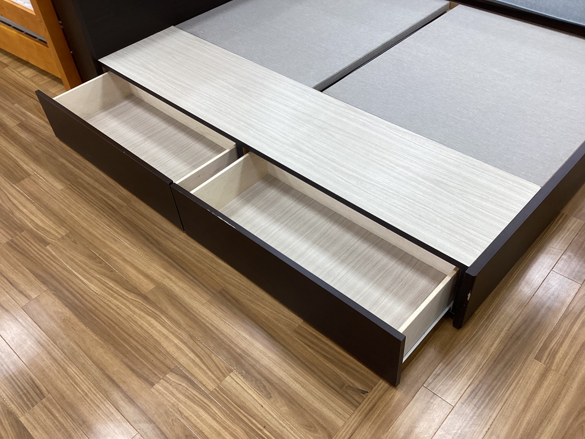 こちらの商品は引き出し式の収納スペースが2個付いておりますので、
