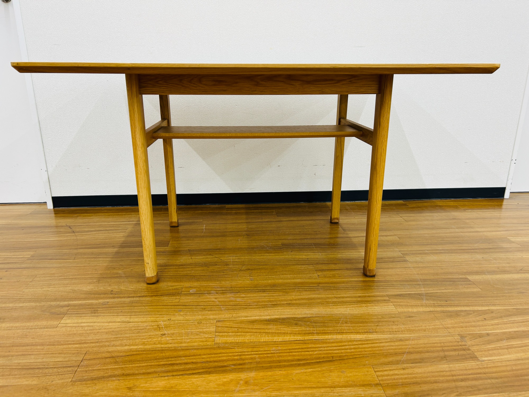 テーブル下には便利な棚があるのでよく使うアイテムなどを綺麗に収納ができます。
