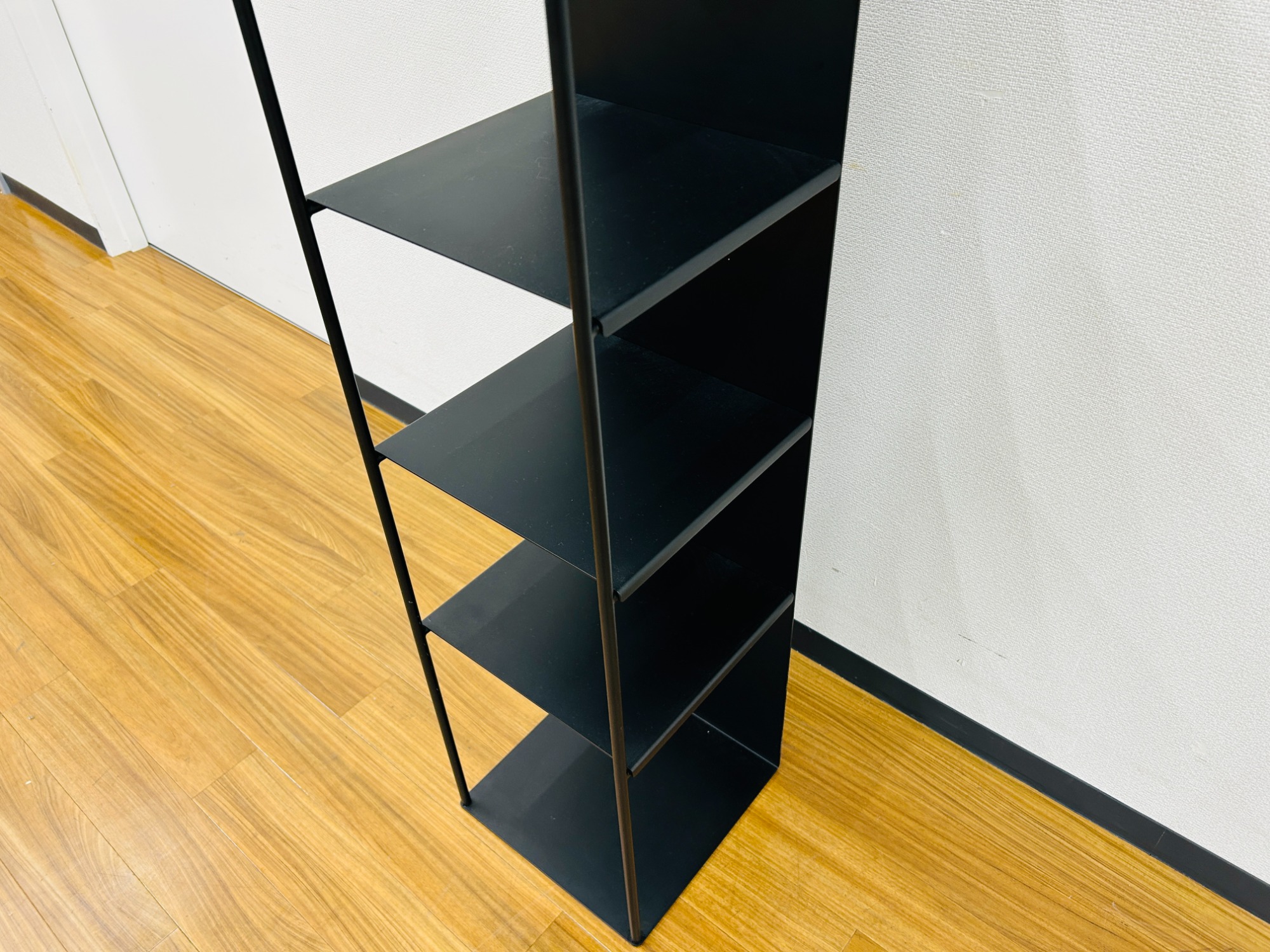 スリムなサイズ感ですが個性的でその存在感は抜群。元々本体に付属する棚板は3枚ですが、追加棚板3枚がセットになっています。
