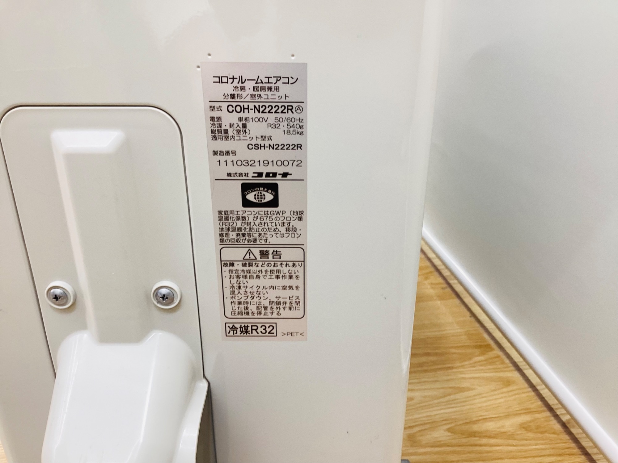 環境に配慮した新冷媒であるR32を採用したモデル。従来のモデルの(R410A)に比べ、熱伝導率が良く、効率性や高さ、安全性にも優れているメリットがあります。