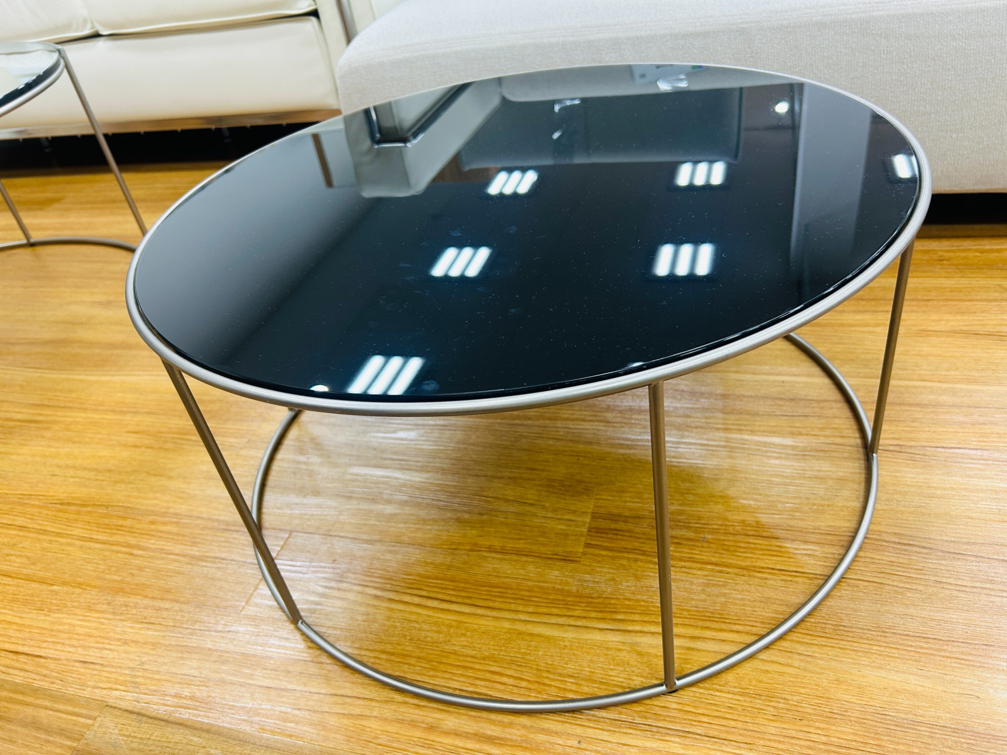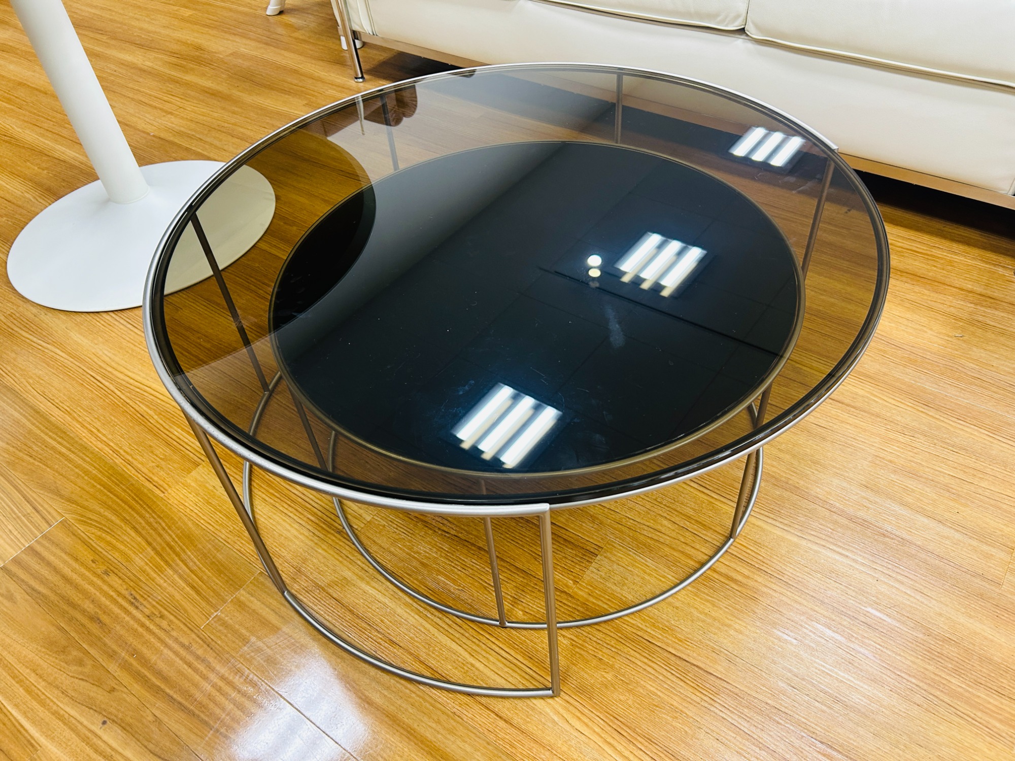 まるで天板が浮いているかのような繊細な脚部が特徴的なローテーブル。