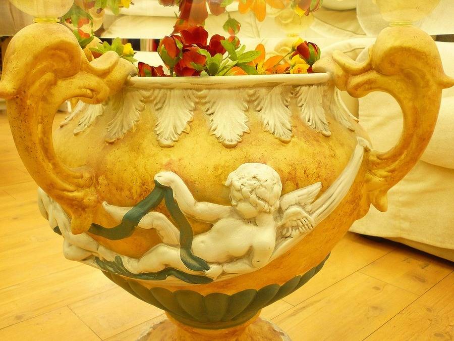 お洒落な装飾を施した、まるで花瓶のようなデザインの台座と、