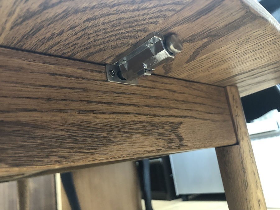 こちら一見するとただのローテーブルですが、側面のスイッチを押して天板を押し上げると・・・