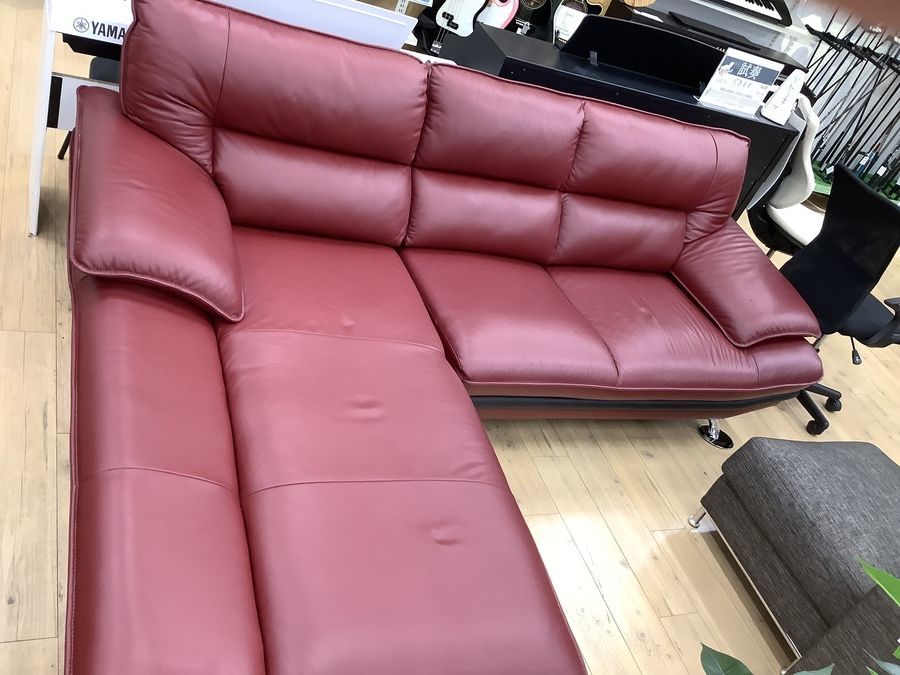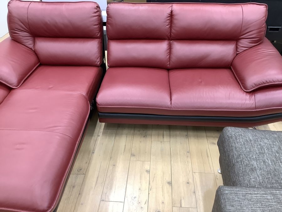 ニトリ レザータイプのレッド カウチソファーです!!