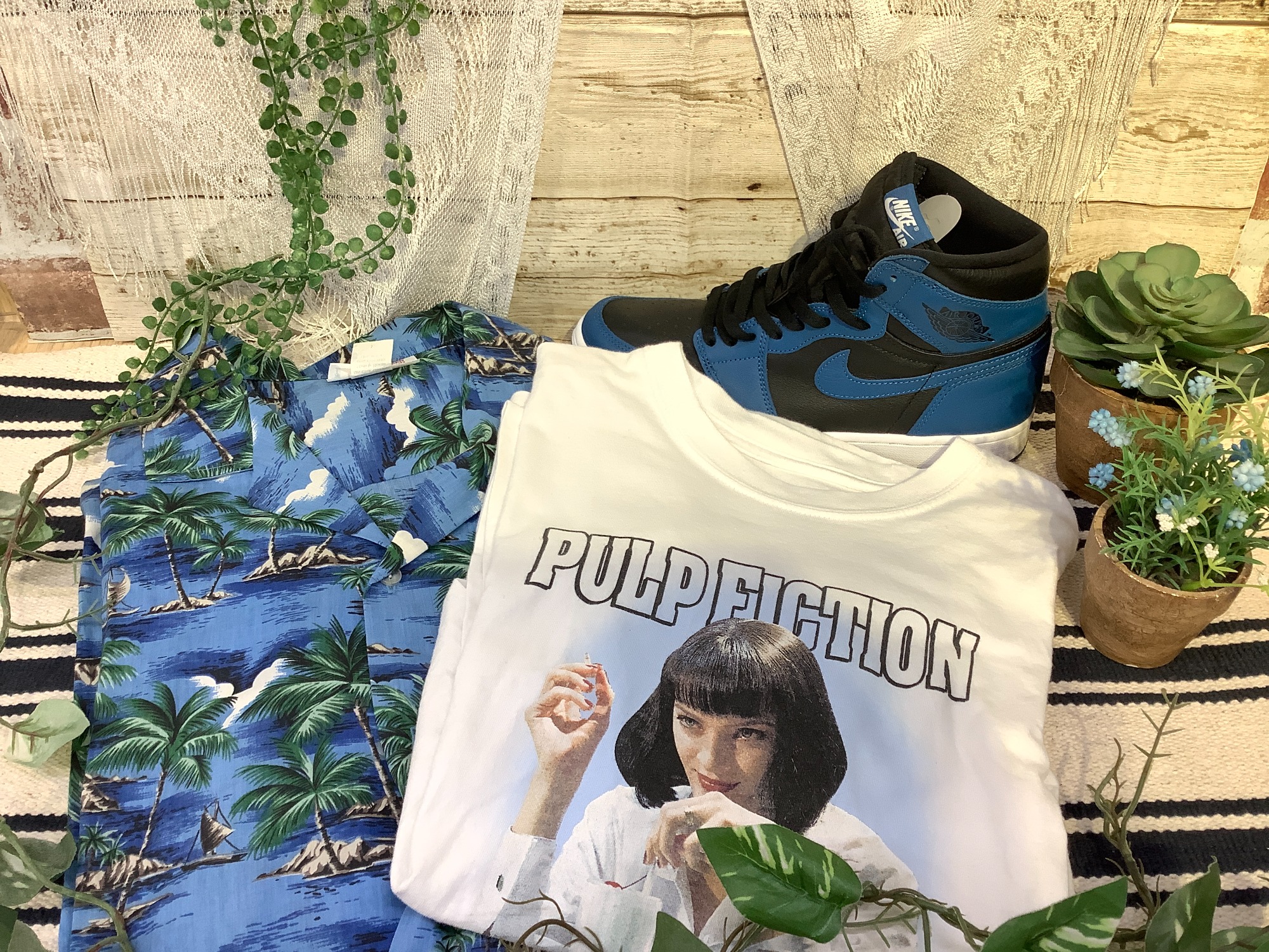 HUF 半袖カットソー EVERGREENISLANDアロハシャツ NIKEスニーカー