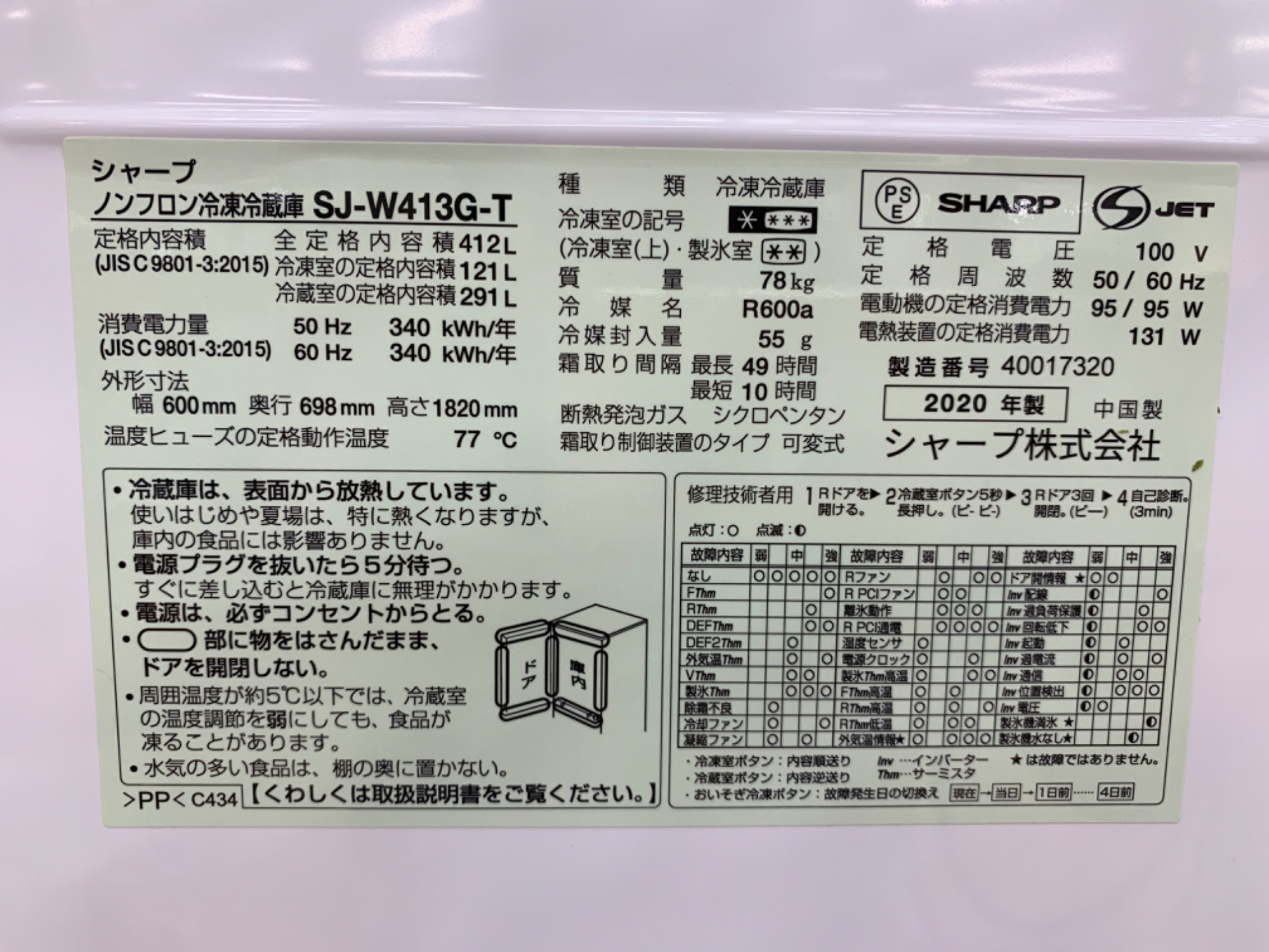 型番:SJ-W413G