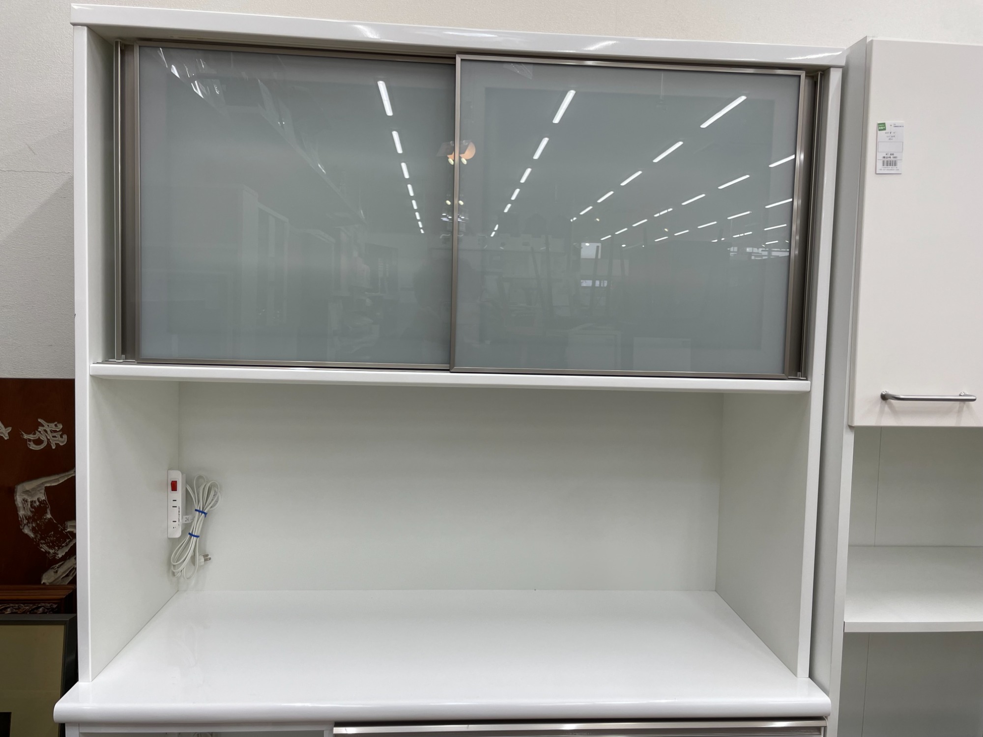 スライド式の二枚扉となっておりキッチン雑貨の収納に便利な造りとなっています!!