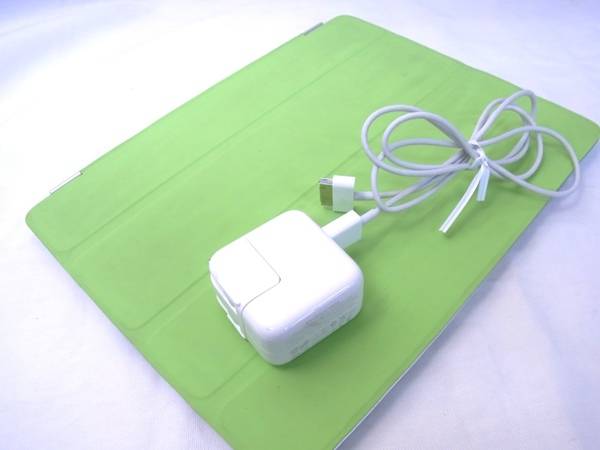 Apple iPad2 16GB Wi-Fi+3G回線(ソフトバンクキャリア) 充電アダプターとケーブル、別売りのスマートカバーが付属します。