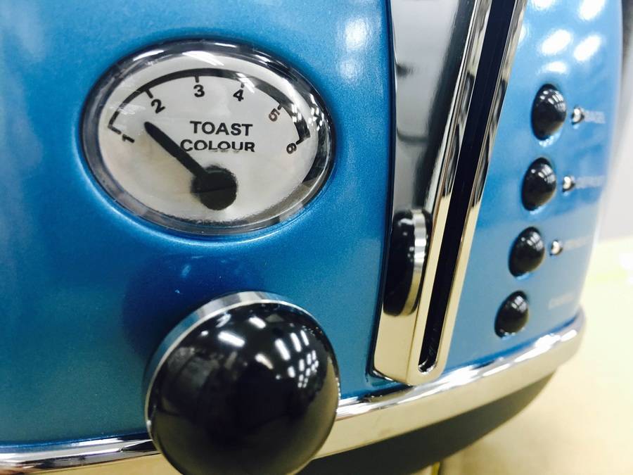 目を惹くブルーのアイコナトースター、キッチンに置けばたちまち主役に♪