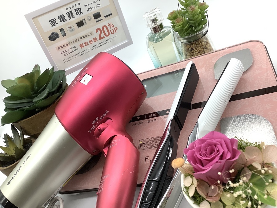 家電といえば、冷蔵庫・洗濯機などの生活家電を思い浮かべる方も多いと思いますが、ヘアアイロン・ドライヤー・体重計等々も立派な家電の一つ★